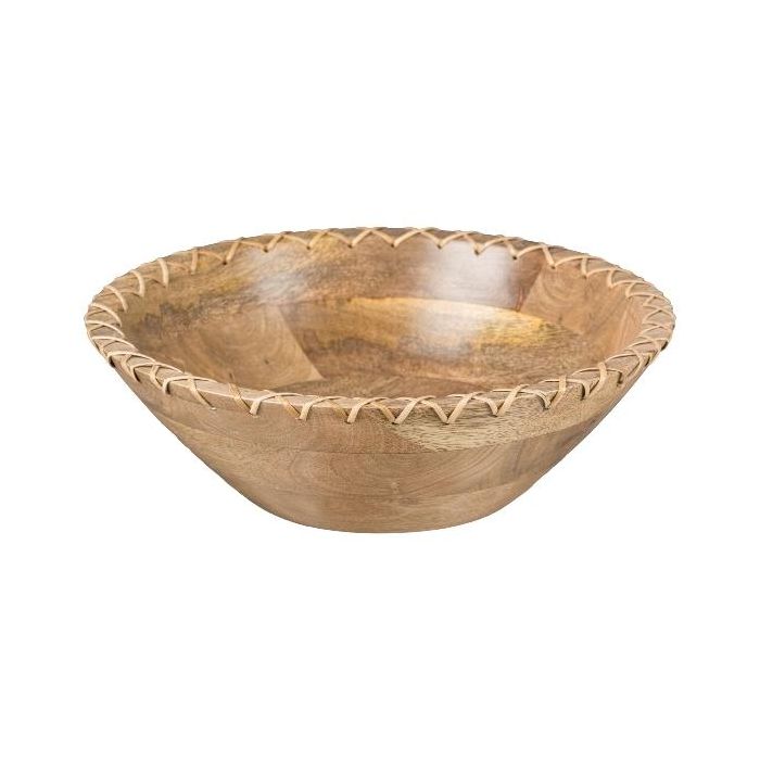 Mango wood bowl MELOBU, with decorative stitching, natural, 3.1"/8cm, Ø10"/25cm