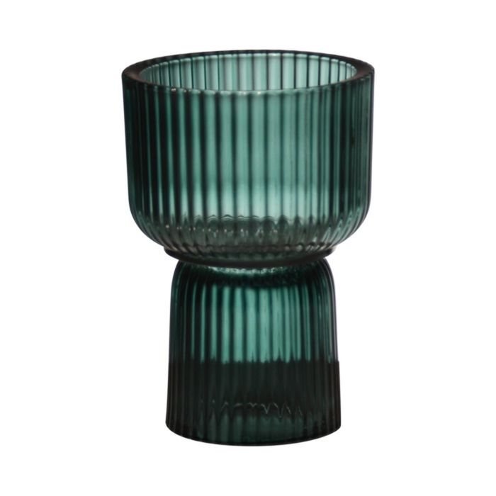 Maxi tea light jar KENSIE, grooves, green-clear, 6.1"/15,5cm, Ø4.1"/10,5cm