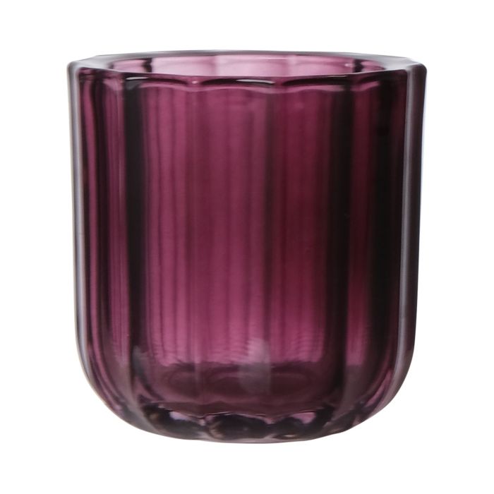 Maxi tealight jar KENSIE, wide grooves, berry-clear, 9,4cm, Ø9cm