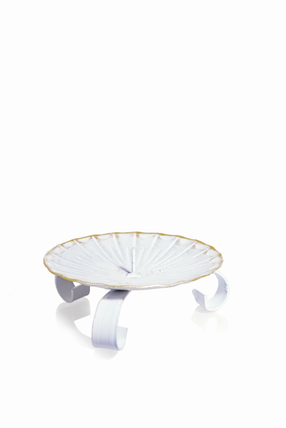 Metal candle holder SARDOS with spike, for candles Ø2"/5cm, white-gold, Ø3.1"/8cm