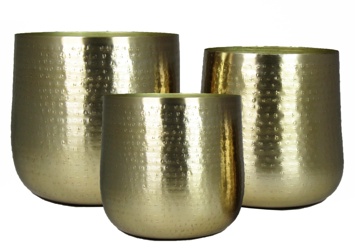Metal flower pot LEANDA, 3 pieces, pattern, gold metallic, 5.1"-8"/13-21cm, Ø5.1"-9"/13-23cm