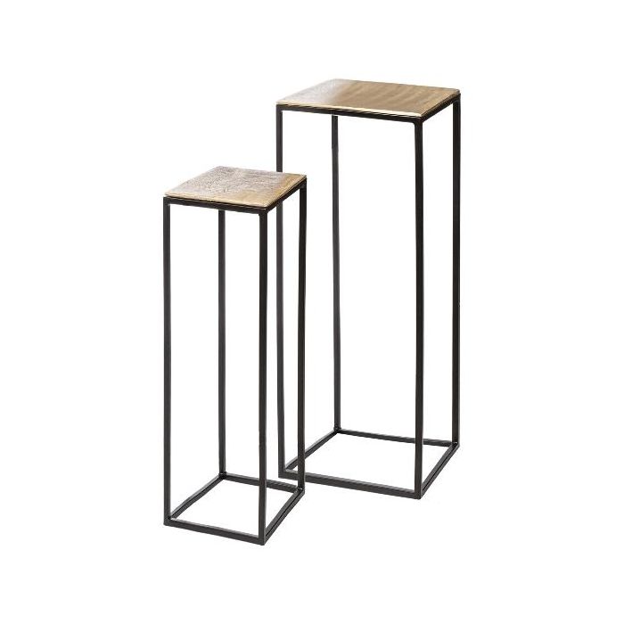 Metal flower stand WAKANDA, 2 pieces, black-brown, 9"x9"x24"/22x22x60cm, 10"x10"x31"/25x25x80cm
