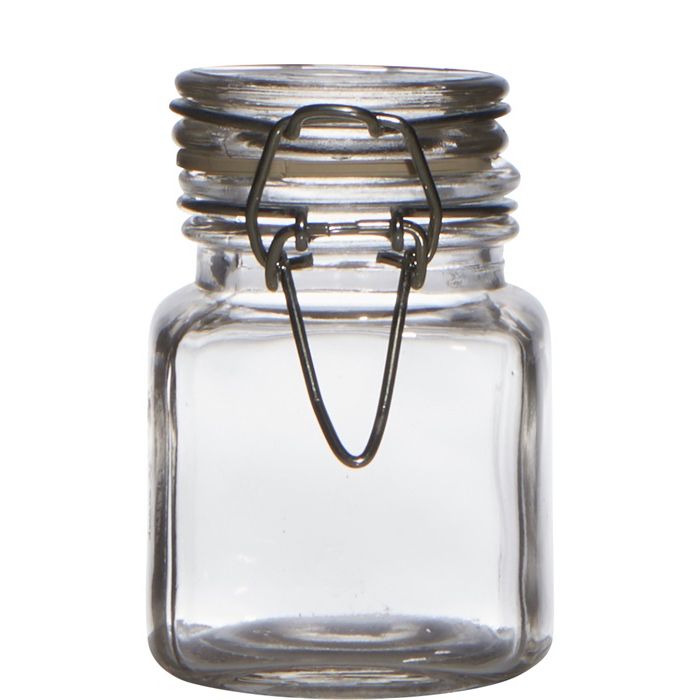Mini preserving jar / spice jar POPPY with swing top, cylinder/round, clear, 3"/7,5cm, Ø2"/5cm