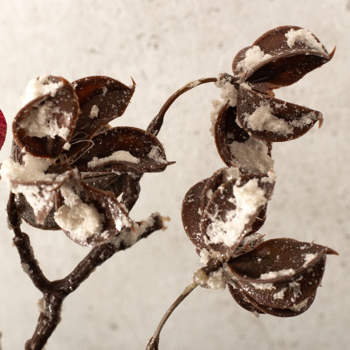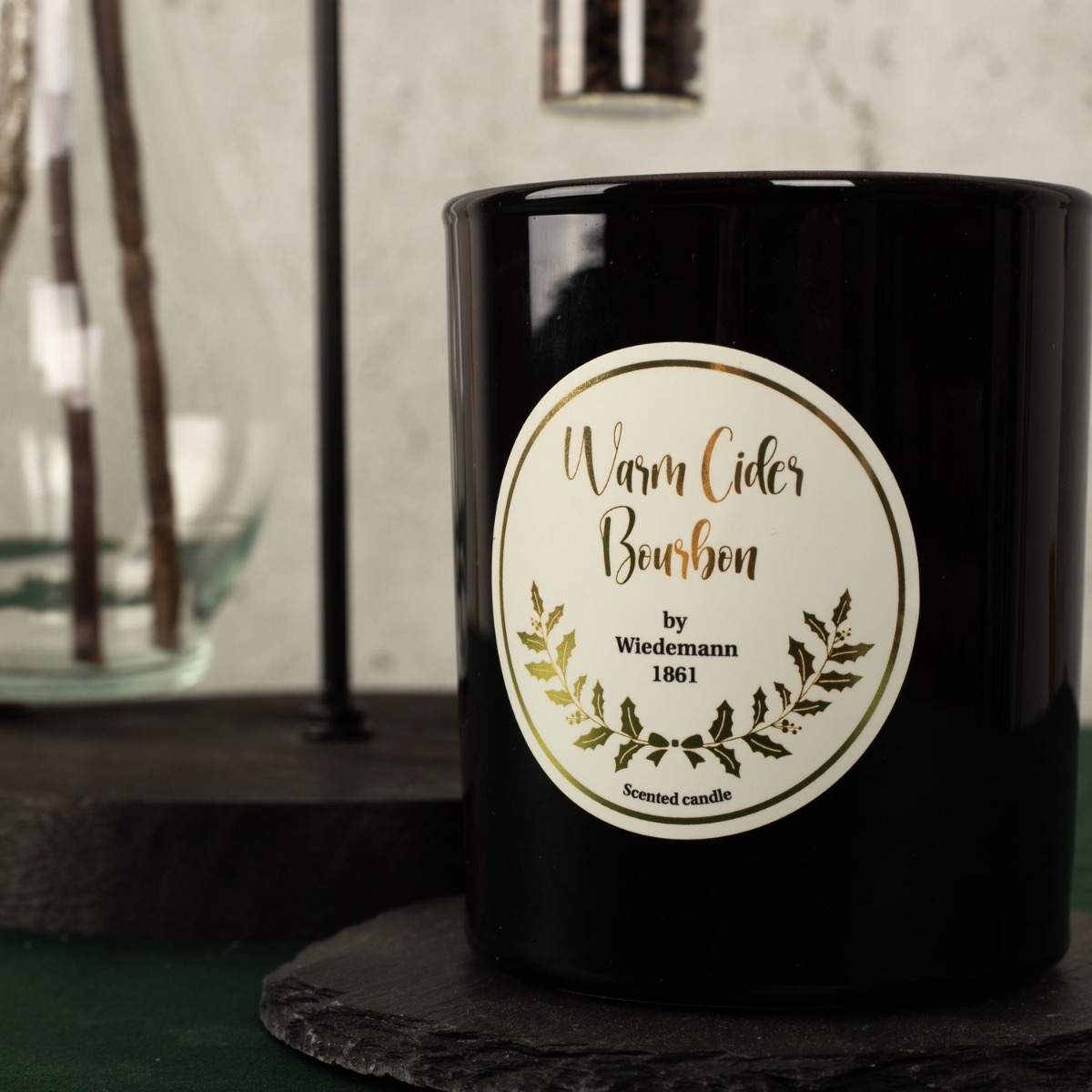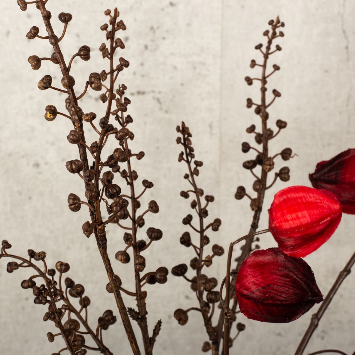Black, silver and a splash of red! Not everyone likes the overloaded decorations that can be seen everywhere, especially at Christmas time. That's why we've developed a winter look that's restrained, elegant and unusual. Physalis in a winter design and bright red, as well as a snow-covered cotton boll branch adorn this unusual vase in an industrial design. The scented candle also exudes an atypical scent of warm cider. A look for the minimalists among us! Shop the look!