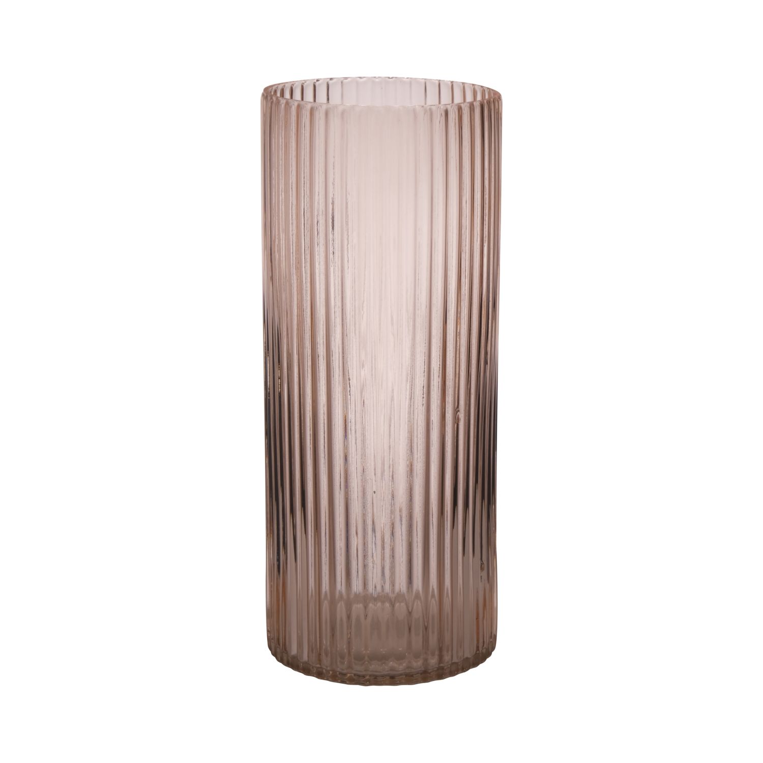 Modern glass vase SORCHA with grooves, pale pink-clear, 30cm, Ø12,5cm