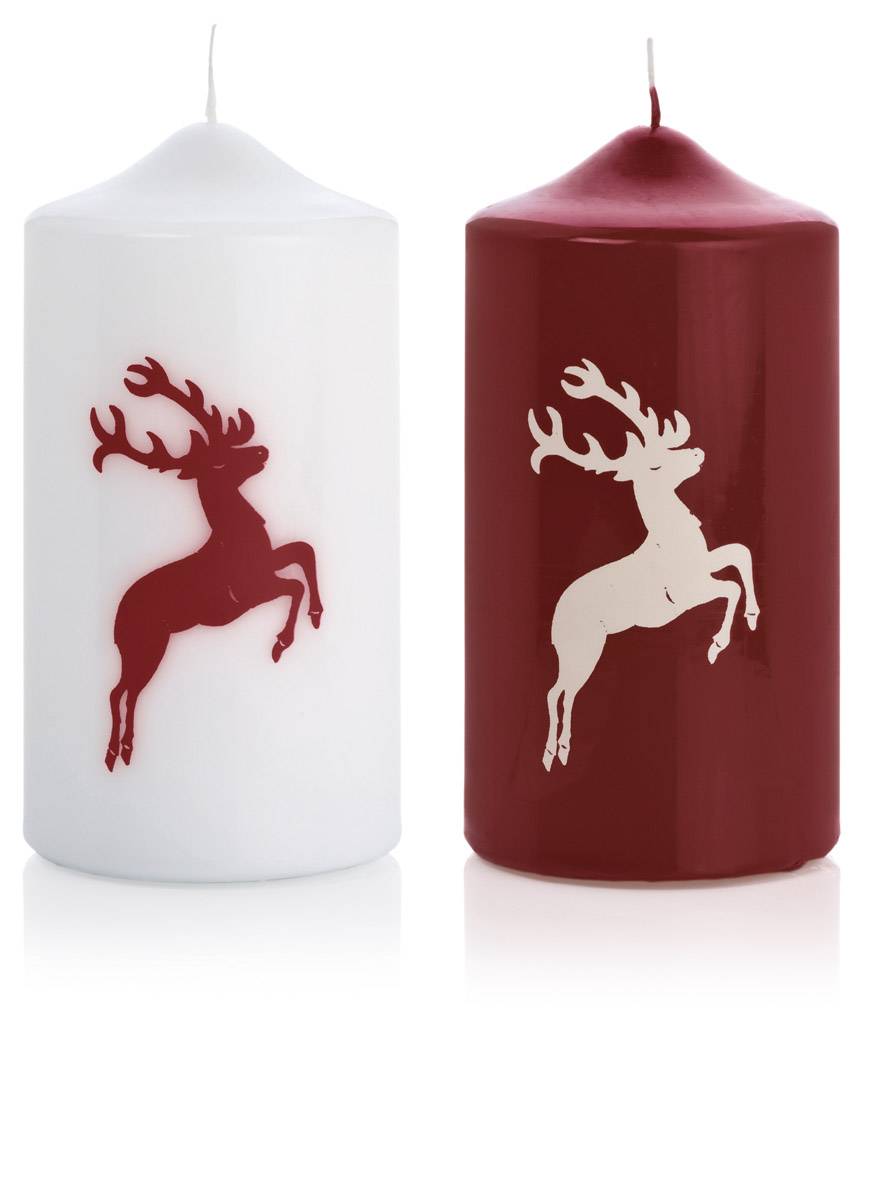 Motif candle / Christmas candle DALDI, deer motif, set of 2, bordeaux, 5.9"/15cm, Ø 3.1"/8cm, 69h - Made in Germany