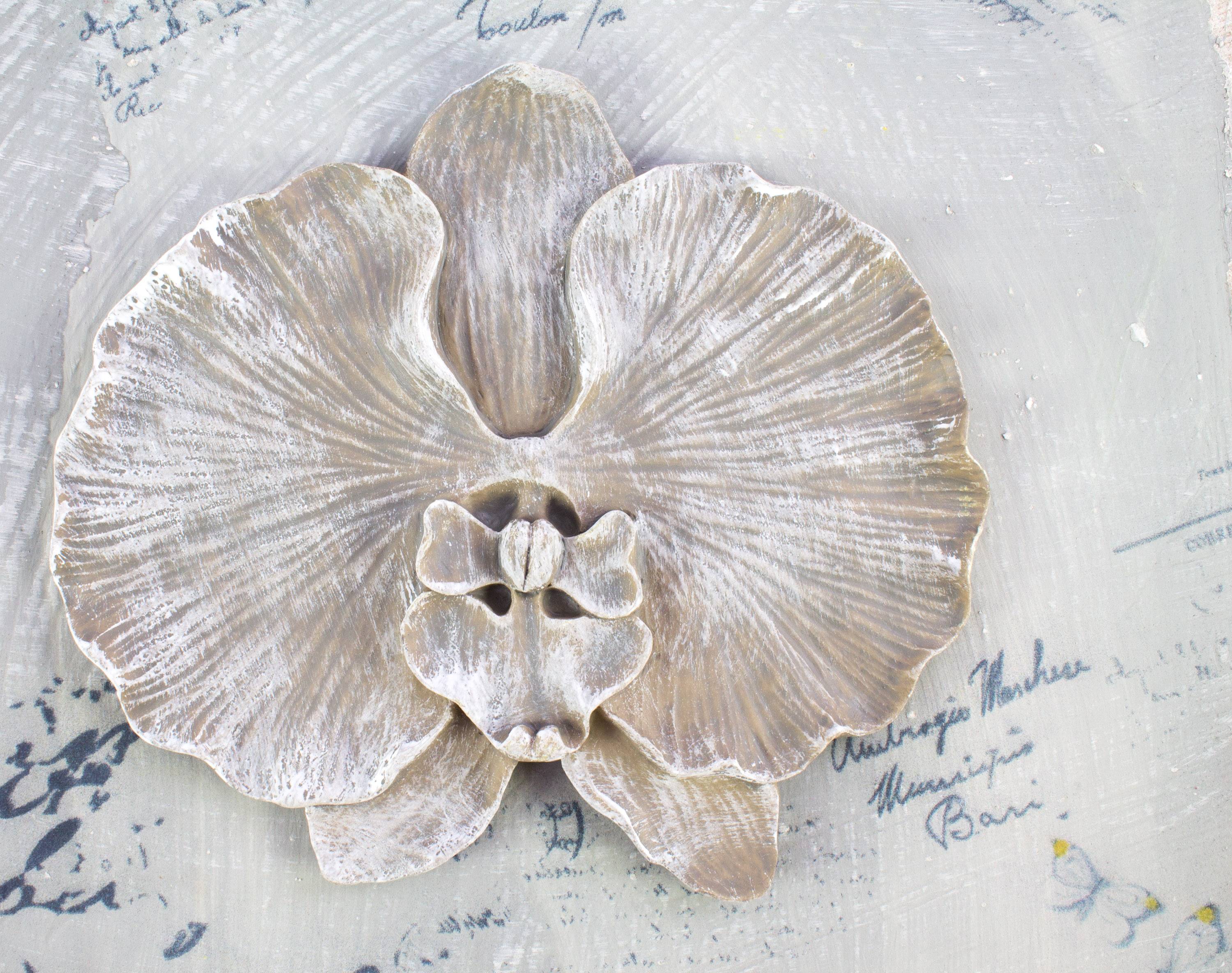 Decorative picture of the Phalaenopsis orchid with a blossom in light grey. The picture in vintage look will appear like a self-made work of art with a size of approx. 32 x 32 cm.