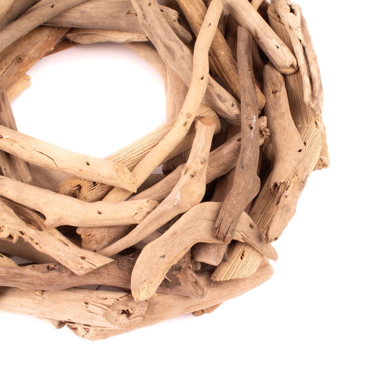 - The wreath consists of individual pieces of driftwood which are put together to form a wreath