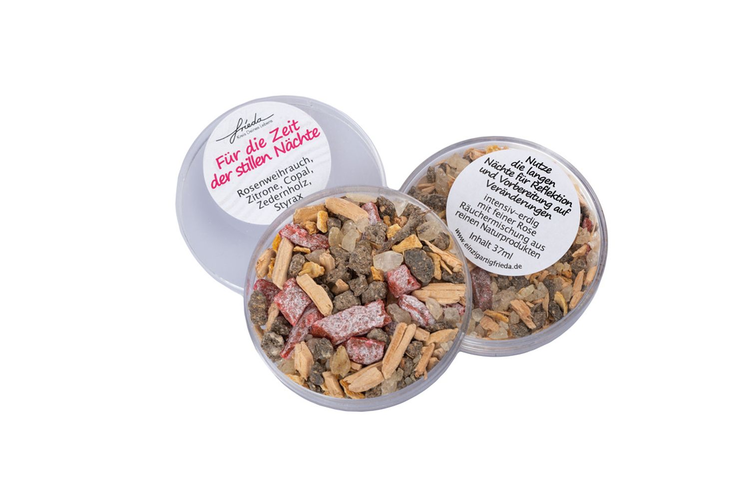 The incense blend can be used on an incense stove with tea light or on incense charcoal in an incense burner. If an incense stove is used, the incense mixture is placed on the sieve. It is advisable to place a piece of aluminium foil on the sieve so that oily components cannot drip into the flame and herbs do not burn too quickly. Another advantage is that the aluminium foil prevents the sieve from sticking and therefore does not need to be cleaned. The heat of the tea light heats up the incense and it begins to smoke and smell. When using an incense burner, sand is first placed in the bowl as heat insulation and then the incense charcoal / charcoal tablets are placed on top. The charcoal is lit and it is waited until the charcoal has glowed through. Only now is the incense mixture placed on the charcoal, which immediately burns up and evaporates, releasing the scent of the mixture. With this method, however, it is not possible to influence how quickly which component is burnt. Depending on the incense mixture, it should be decided beforehand which method is the better one. It is important that a fireproof base is used for both methods of application and that it is never left unattended.