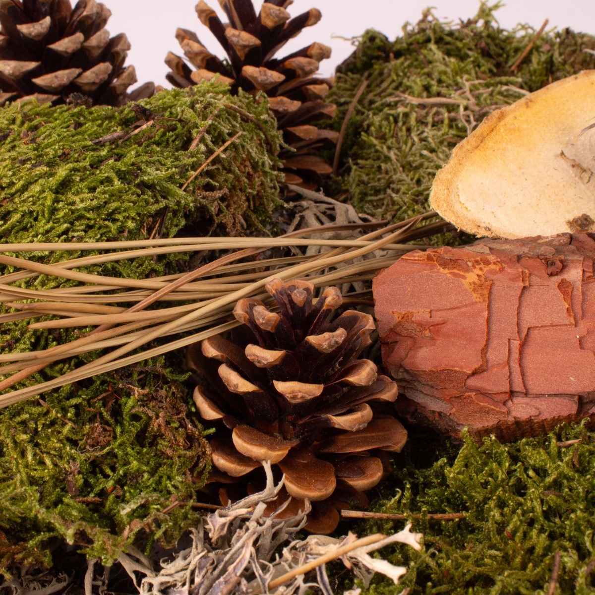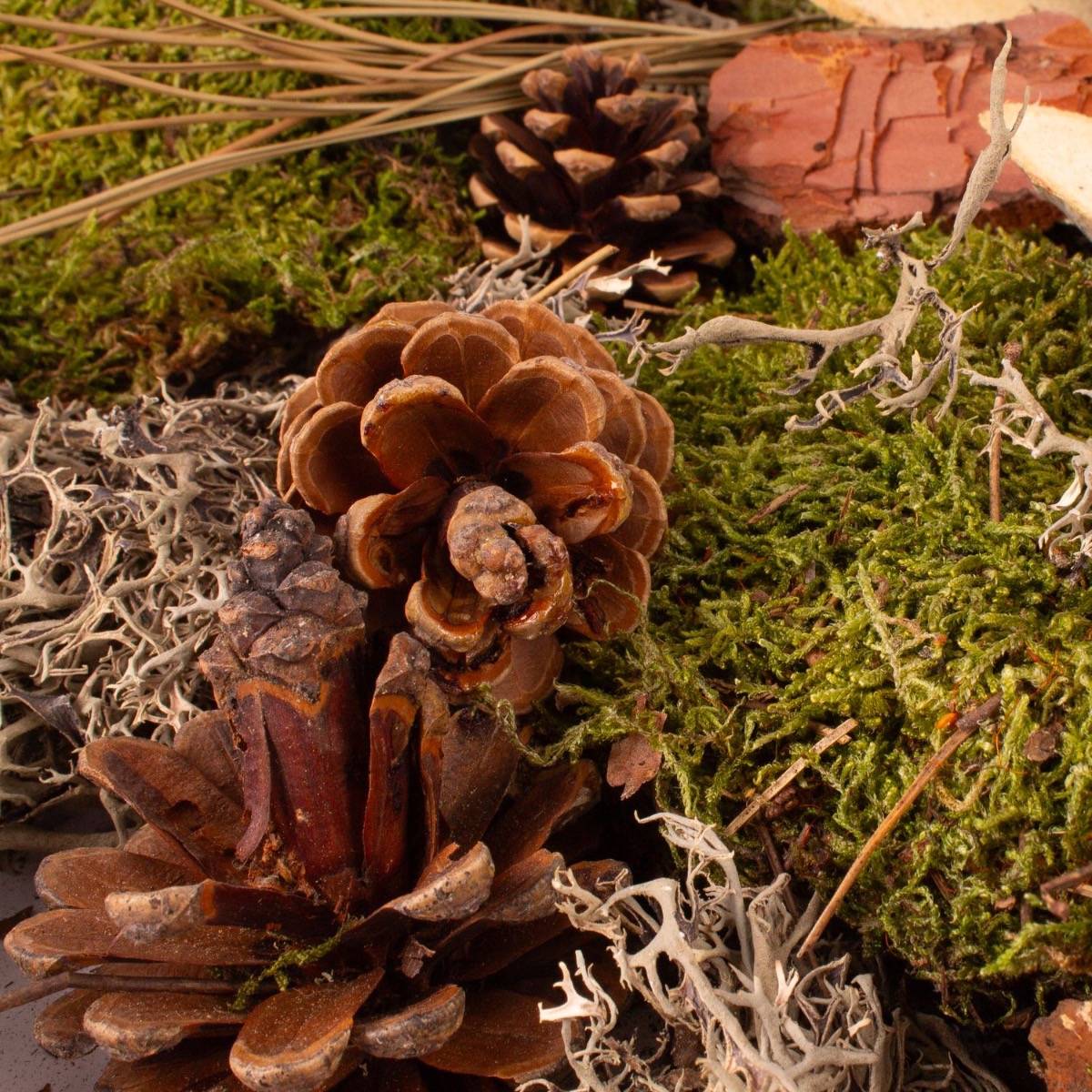 Natural scatter decoration QUIKISA made of moss, cones, wood, lichen, green-brown, 500g