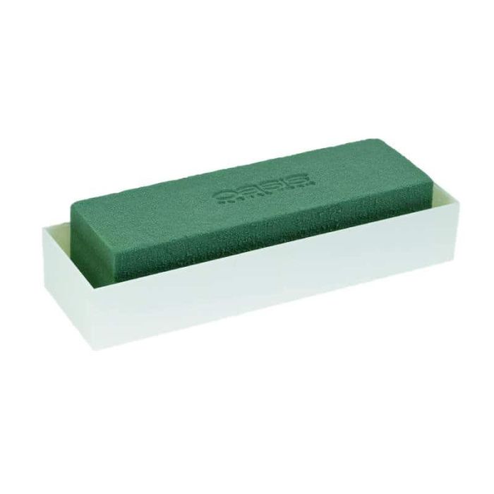OASIS® Rectangular wet florist sponge for flower arrangements, in plastic bowl, green-cream, 9"x2.8"x2.2"/22x7x5,5cm