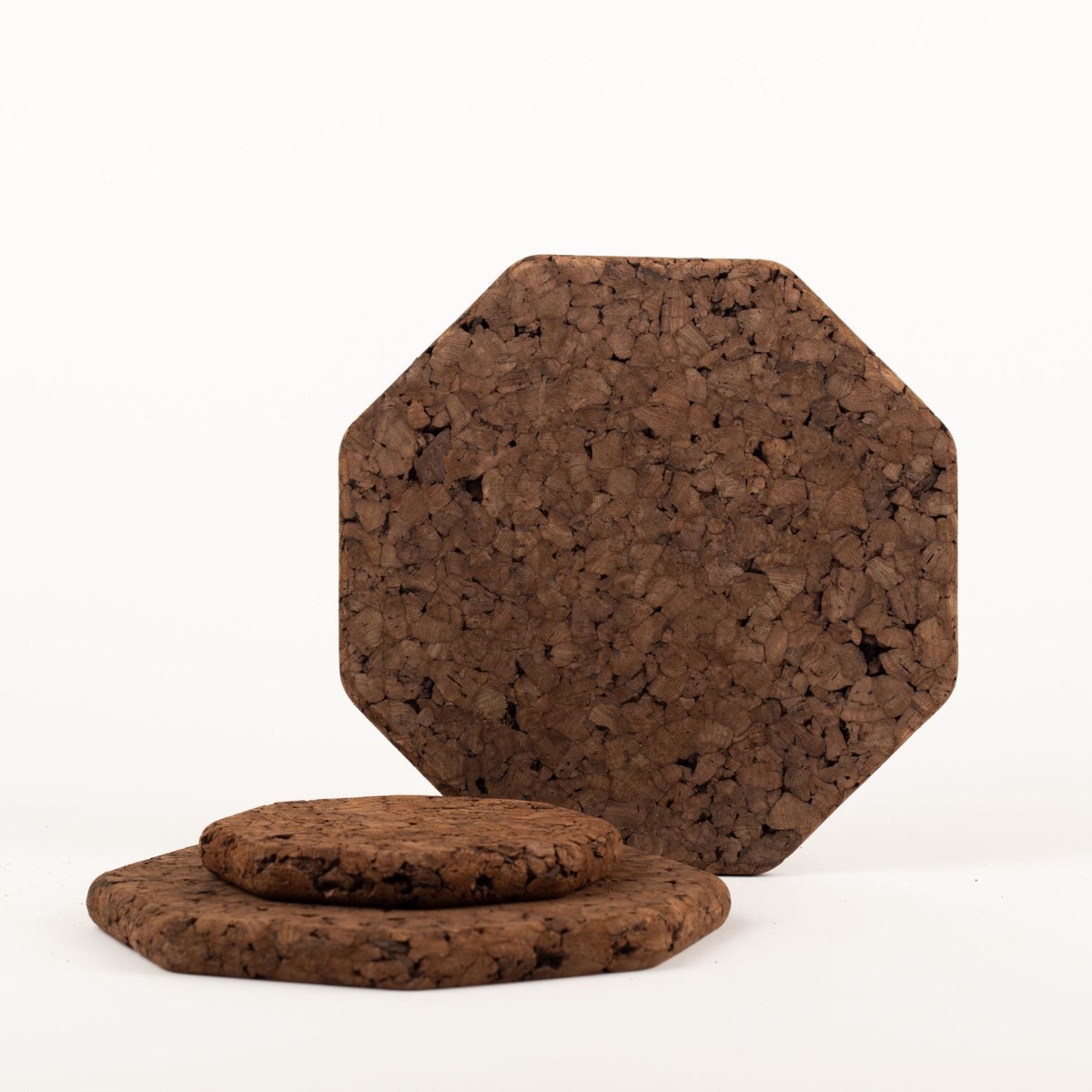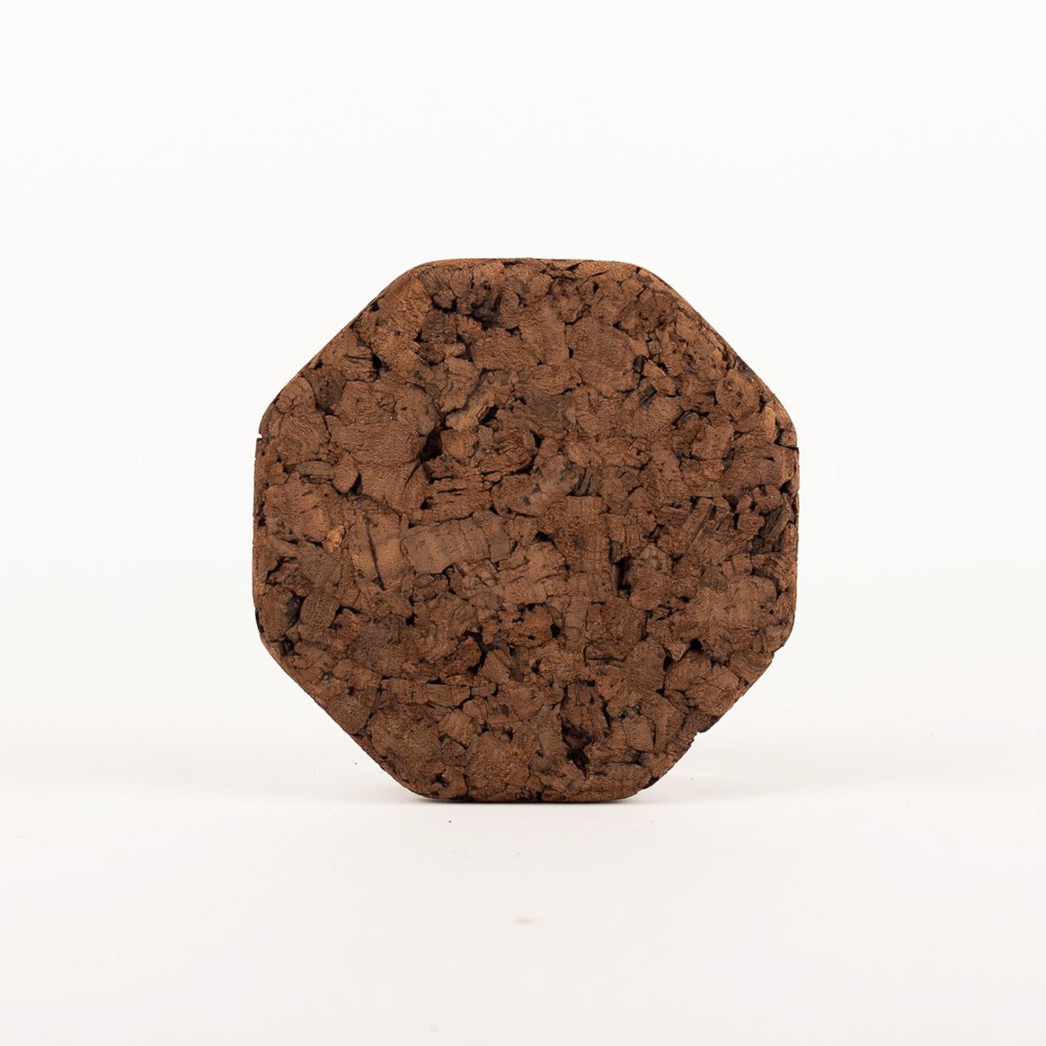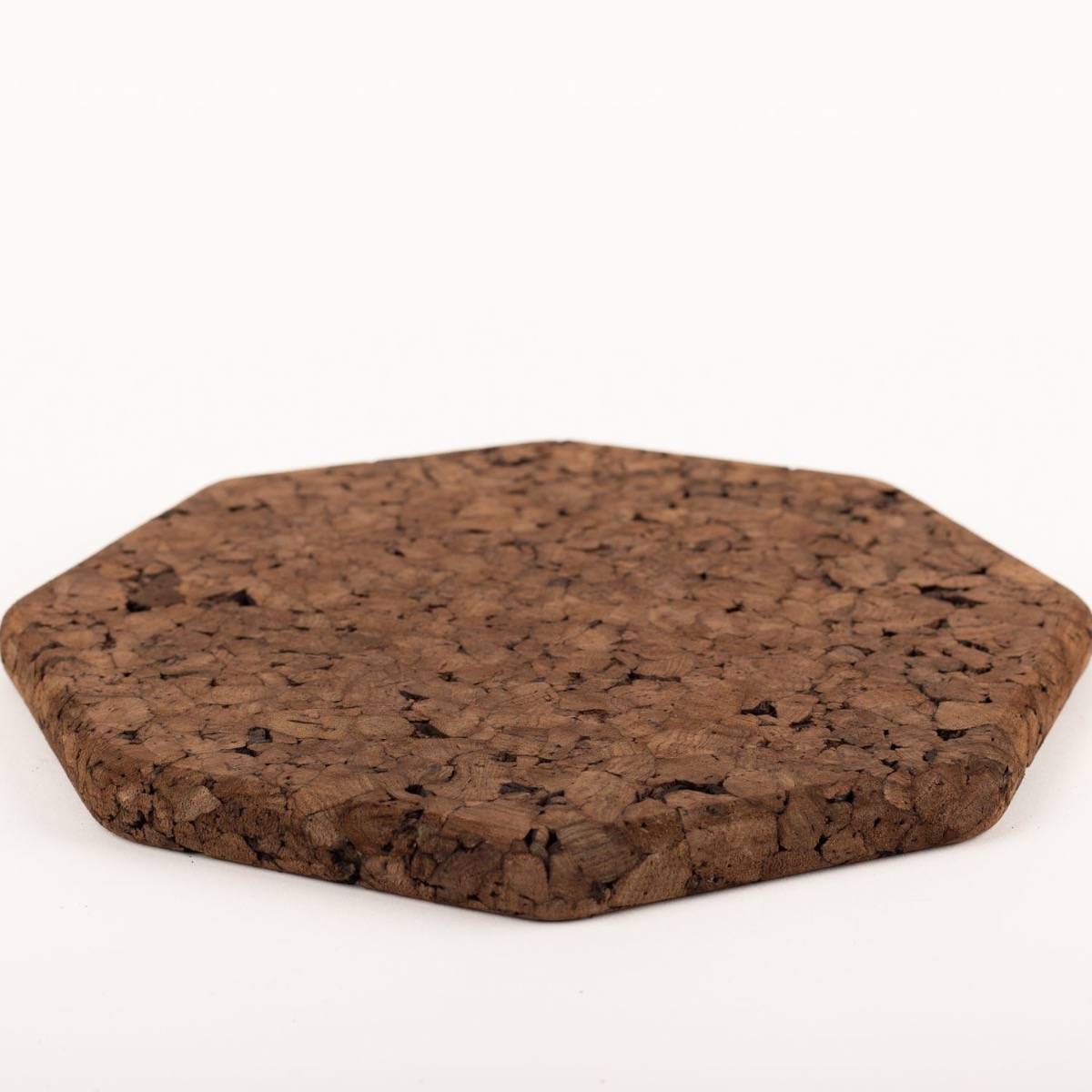 Octagonal agglomerated cork coaster MANARA, dark, 0.7"/1,8cm, Ø8"/21cm