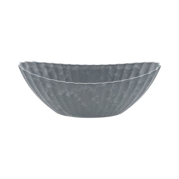 Oval bowl KENNYA with grooves, synthetic, grey, 14"x6"x5.5"/36x16x14cm