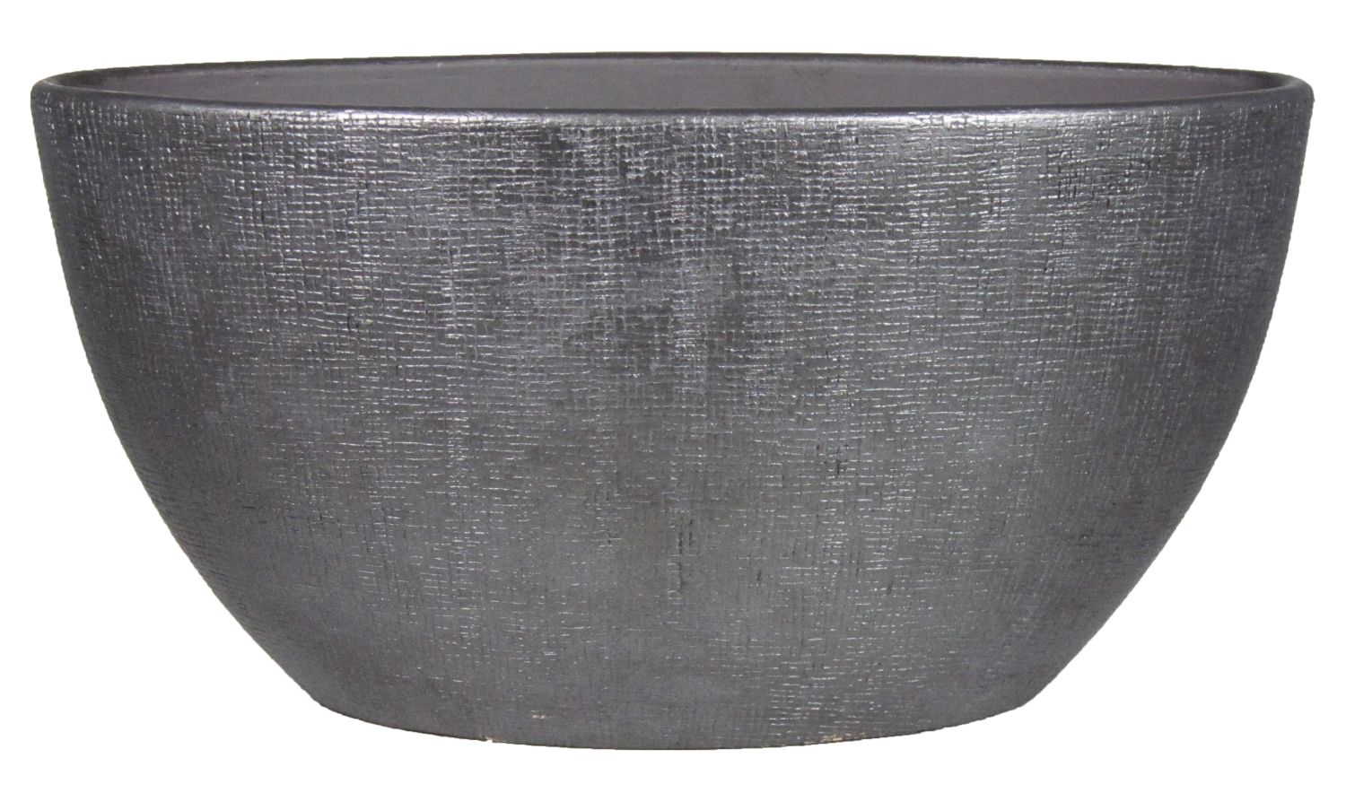 Oval ceramic pot AGAPE with texture, black, 19"x8"x10"/49x20x25cm
