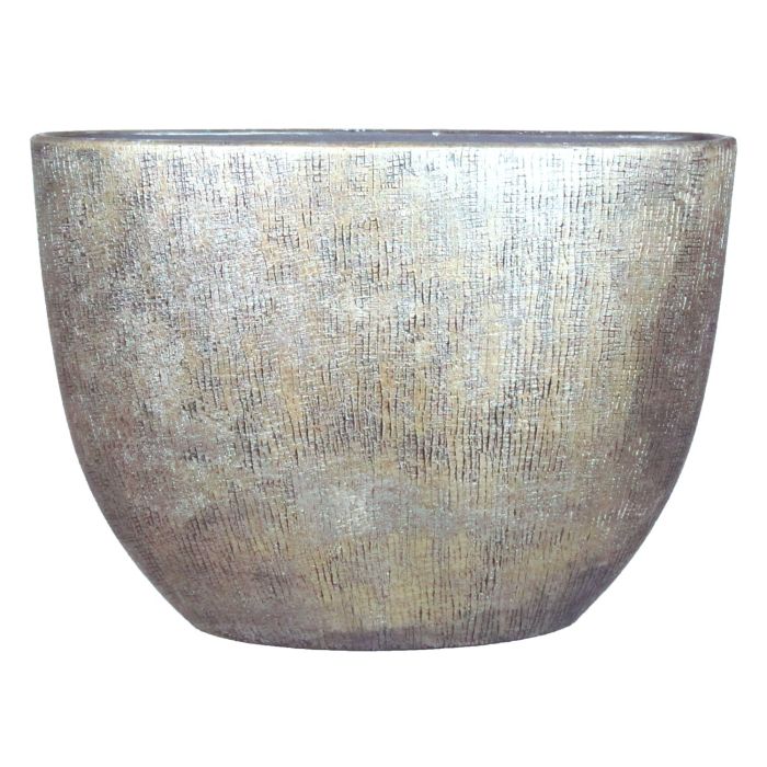 Oval ceramic pot AGAPE with texture, gold, 19,5"x8"x14"/50x20x36cm