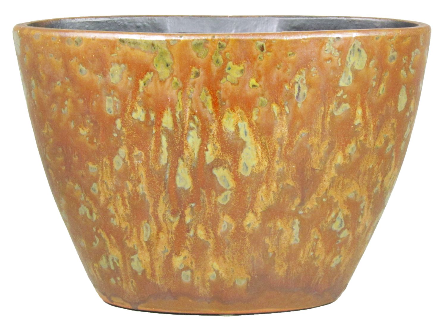 Oval planter ELIEL in ceramic, speckled, orange-yellow, 12,5"x6"x8,5"/32x15x22cm