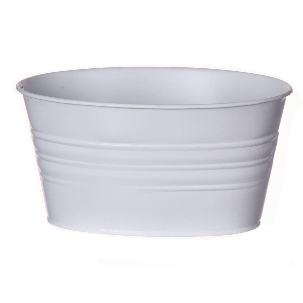 Oval zinc pot MICOLATO with grooves, white, 7"x5.3"x4"/19x13,5x10cm