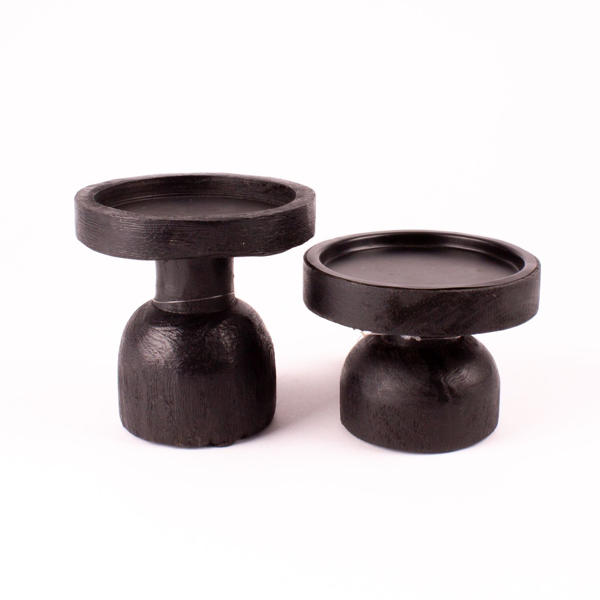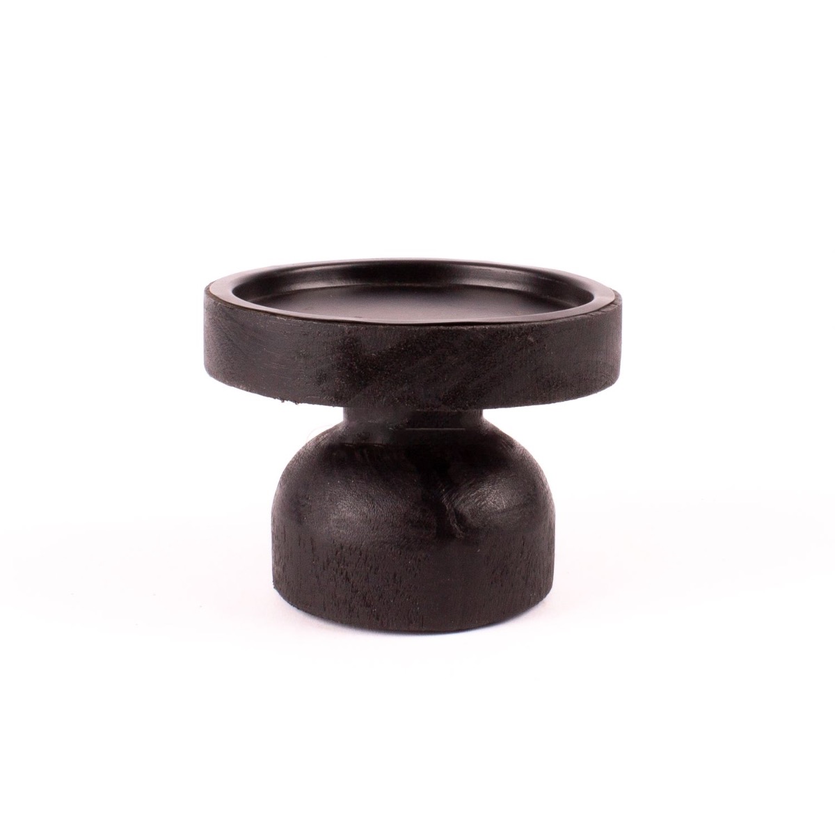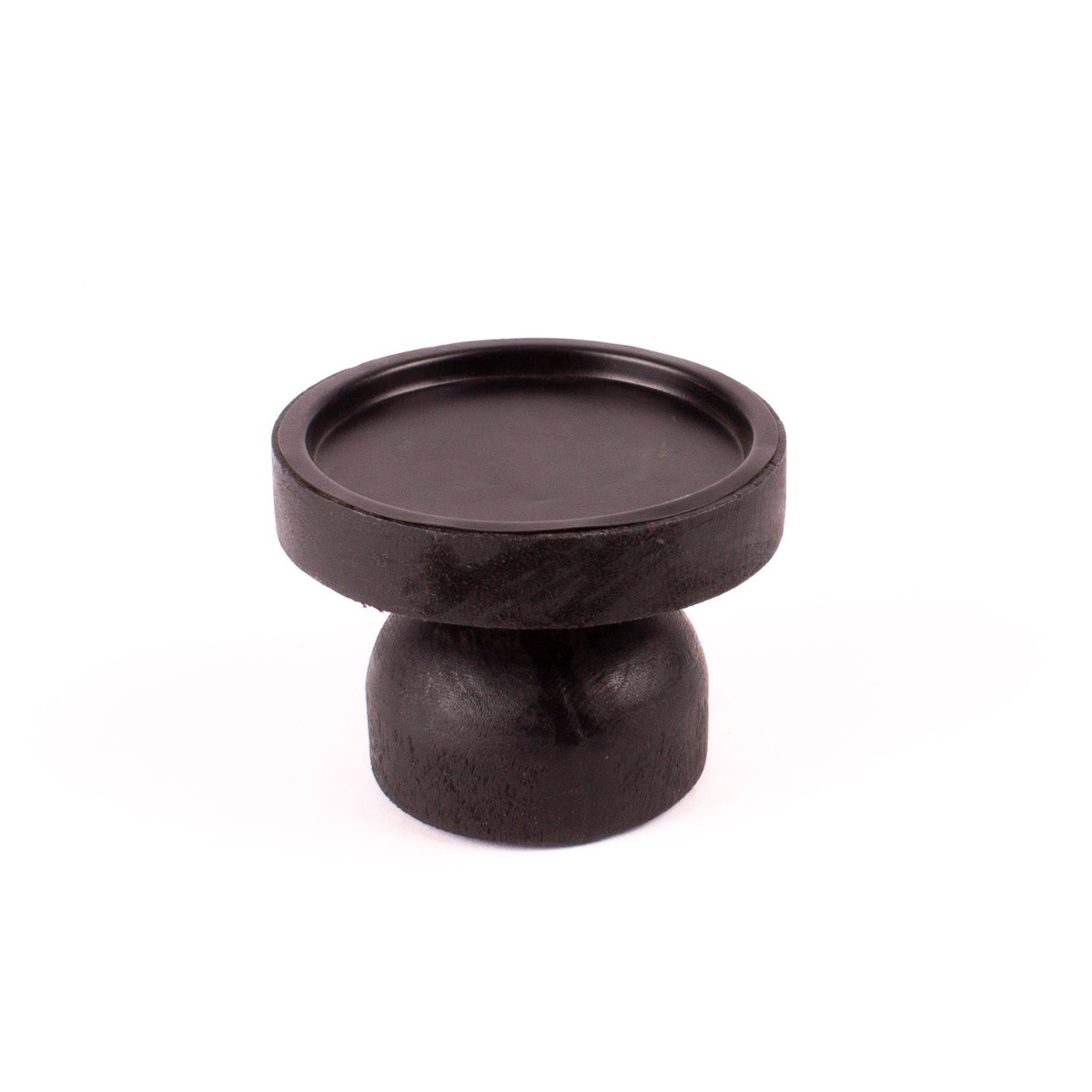Pillar candle holder MIMARIS made of wood, with foot, black, 3.5"/9cm, Ø4.7"/12cm