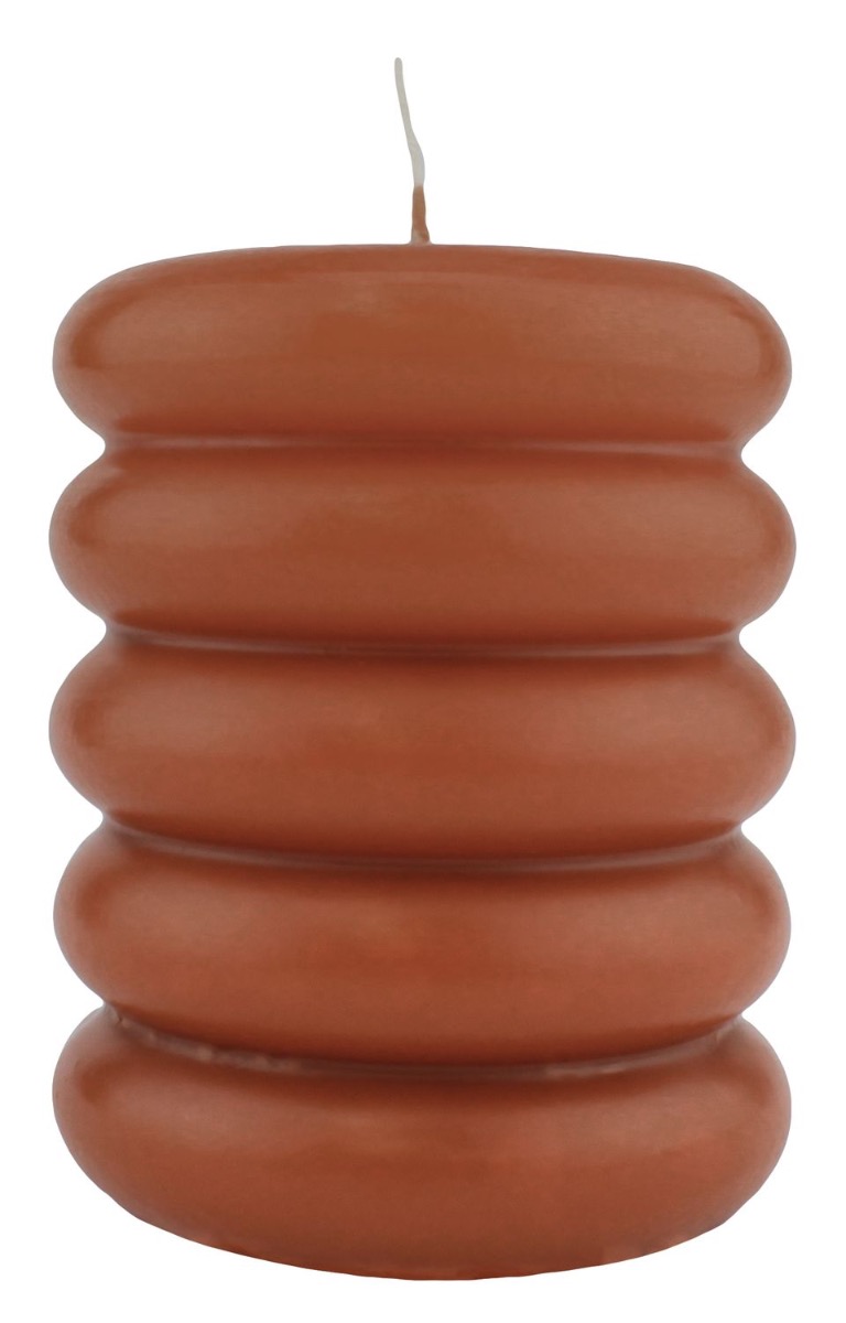 Pillar candle MONISHA with horizontal grooves, cognac, 4.3"/11cm, Ø3.5"/9cm, 69h - Made in Germany