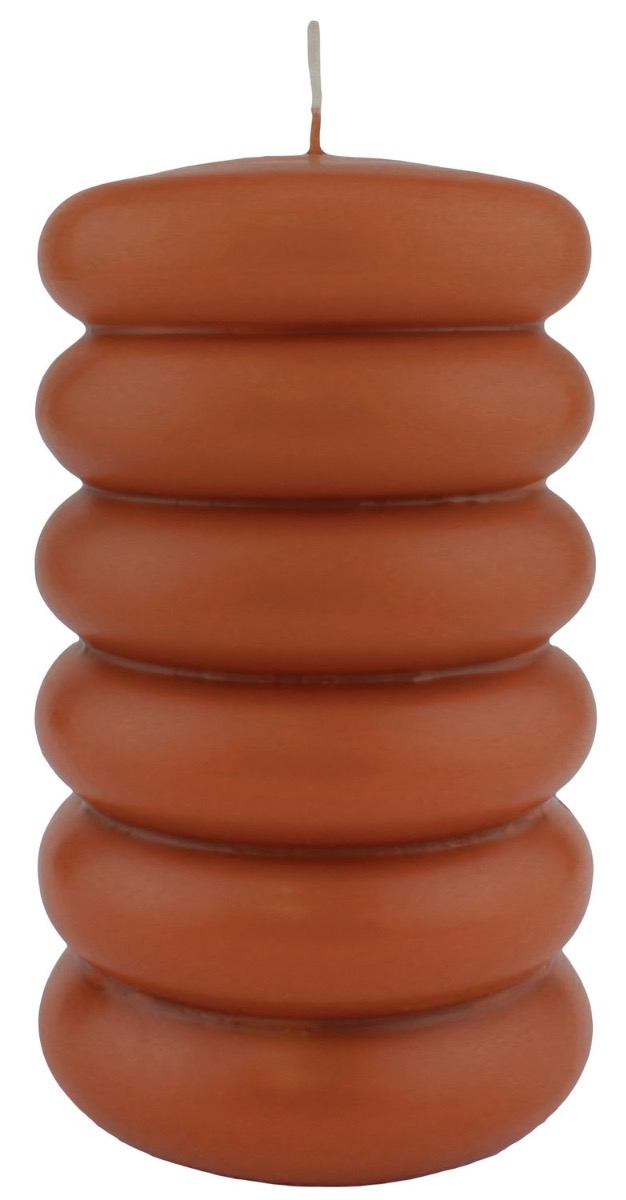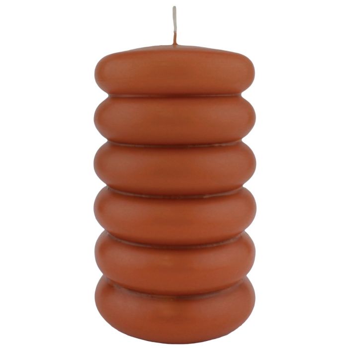 Pillar candle MONISHA with horizontal grooves, cognac, 6"/15cm, Ø3.5"/9cm, 69h - Made in Germany