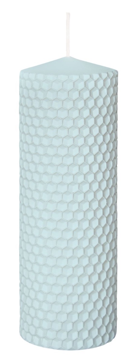 Pillar candle OSTARA in honeycomb look, sky blue, 6"/15cm, Ø2"/5cm, 37h - Made in Germany