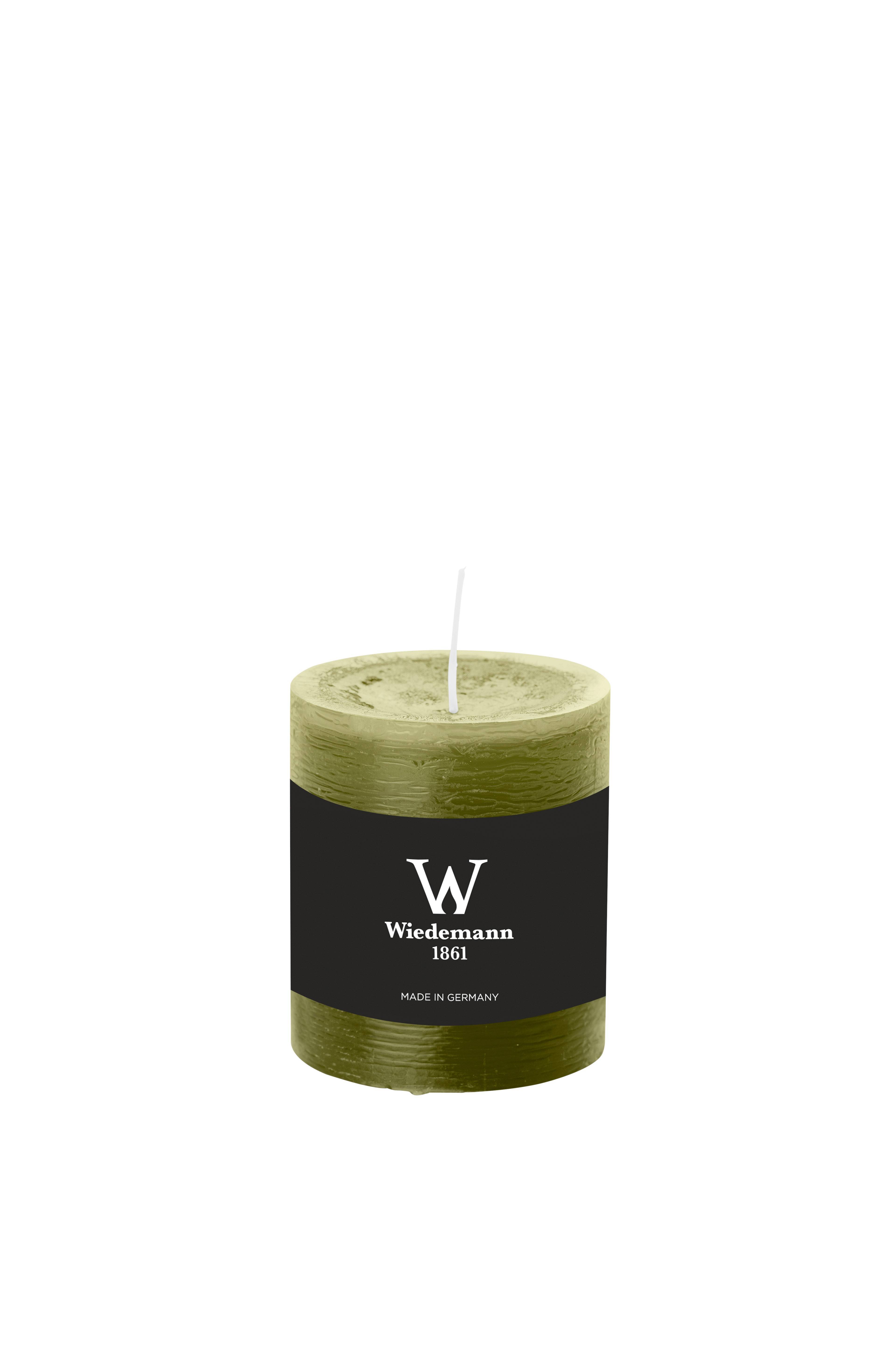 Pillar candle / Wax candle AURORA, olive green, 3.1"/8cm, Ø2.7"/6,8cm, 34h - Made in Germany