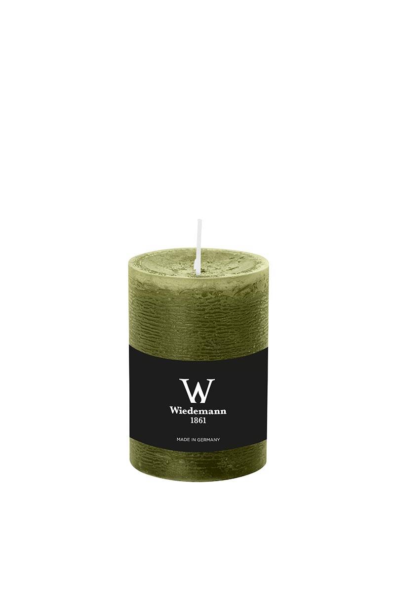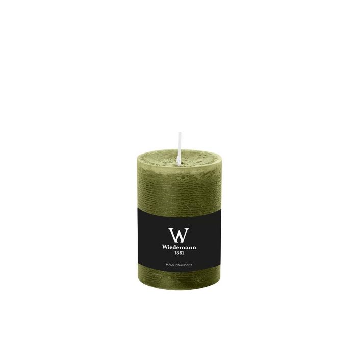 Pillar candle / Wax candle AURORA, olive green, 4"/10cm, Ø2.7"/6,8cm, 42h - Made in Germany