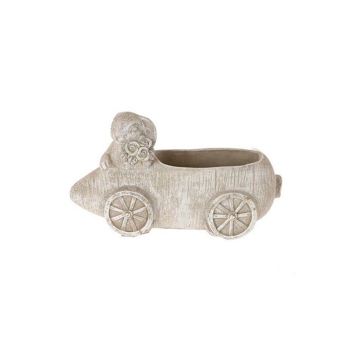 Plant pot Car RIANAS with bunny, cement, Easter decoration, grey-white, 7"x3.5"x3.7"/18x9x9,5cm