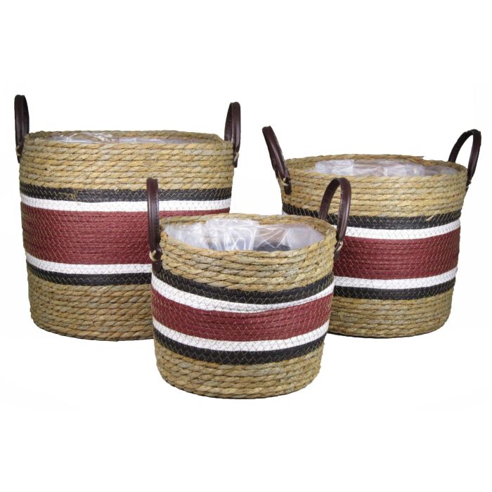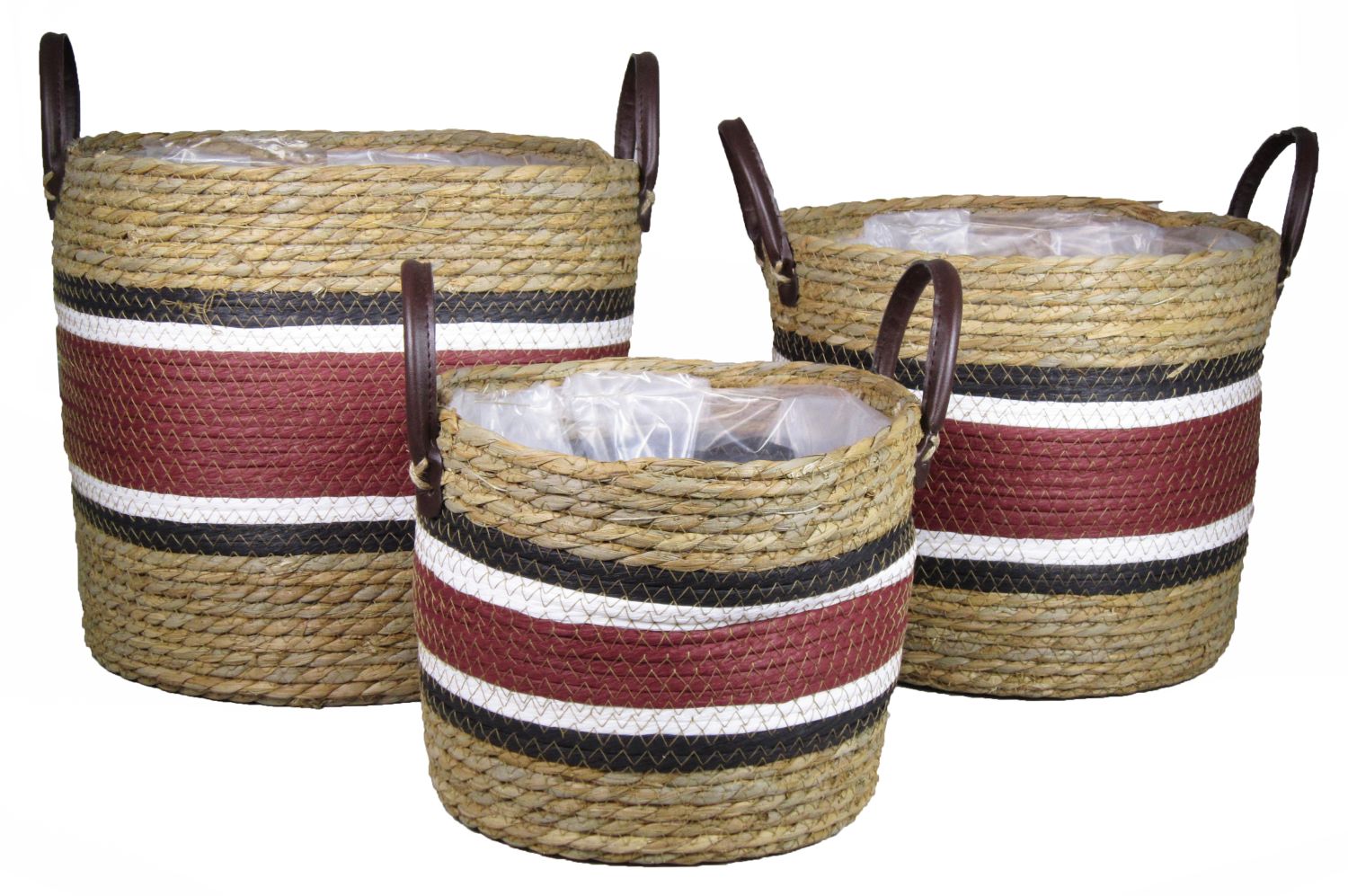 Planter basket KIONA with handle, 3 pieces, red-beige, 8"-12"/20-30 cm, Ø 10"-14"/25-36 cm