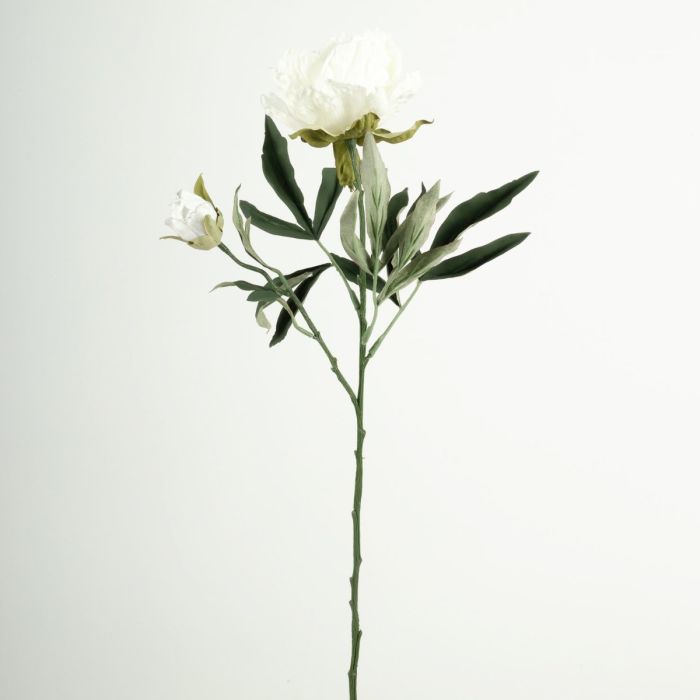 Plastic flower branch Peony GALENE, Eco Collection, white-purple, 26"/65cm, Ø4"/10cm