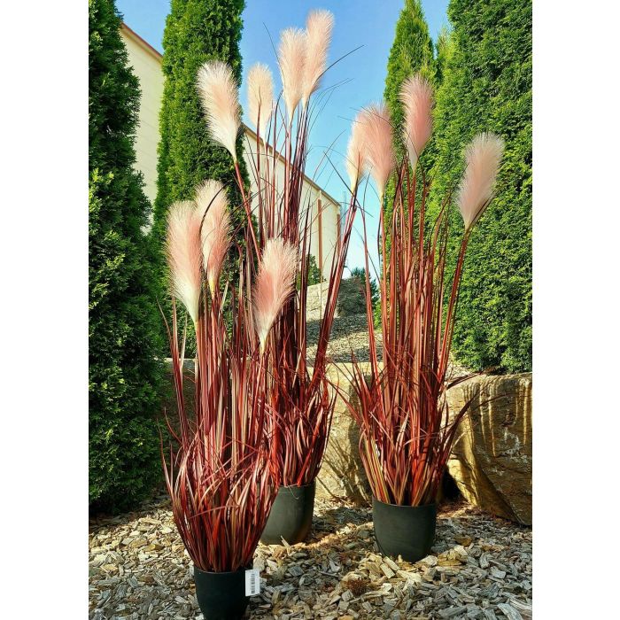Plastic pampas grass WERNHILD with panicles, in decorative pot, red-brown, 3ft/90cm