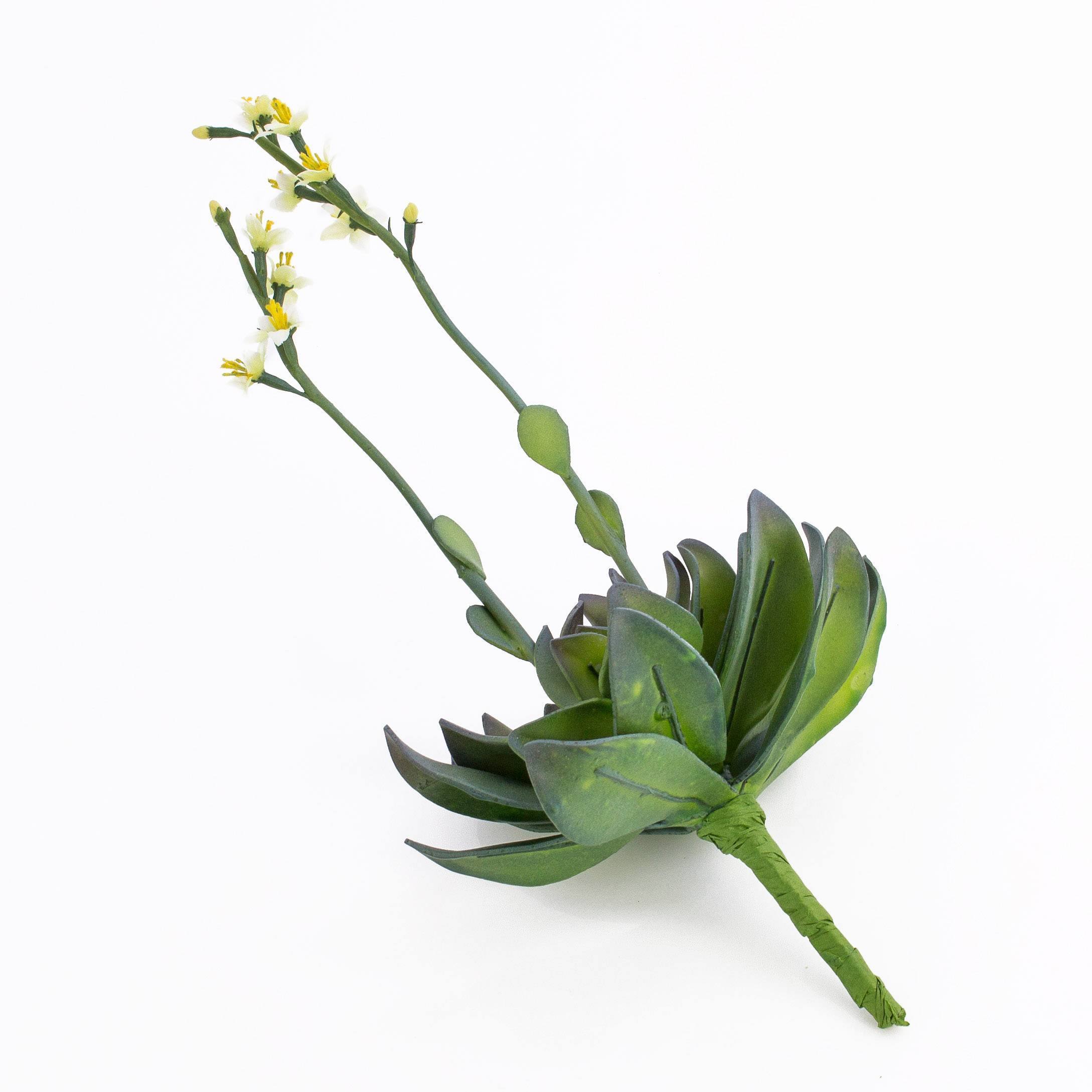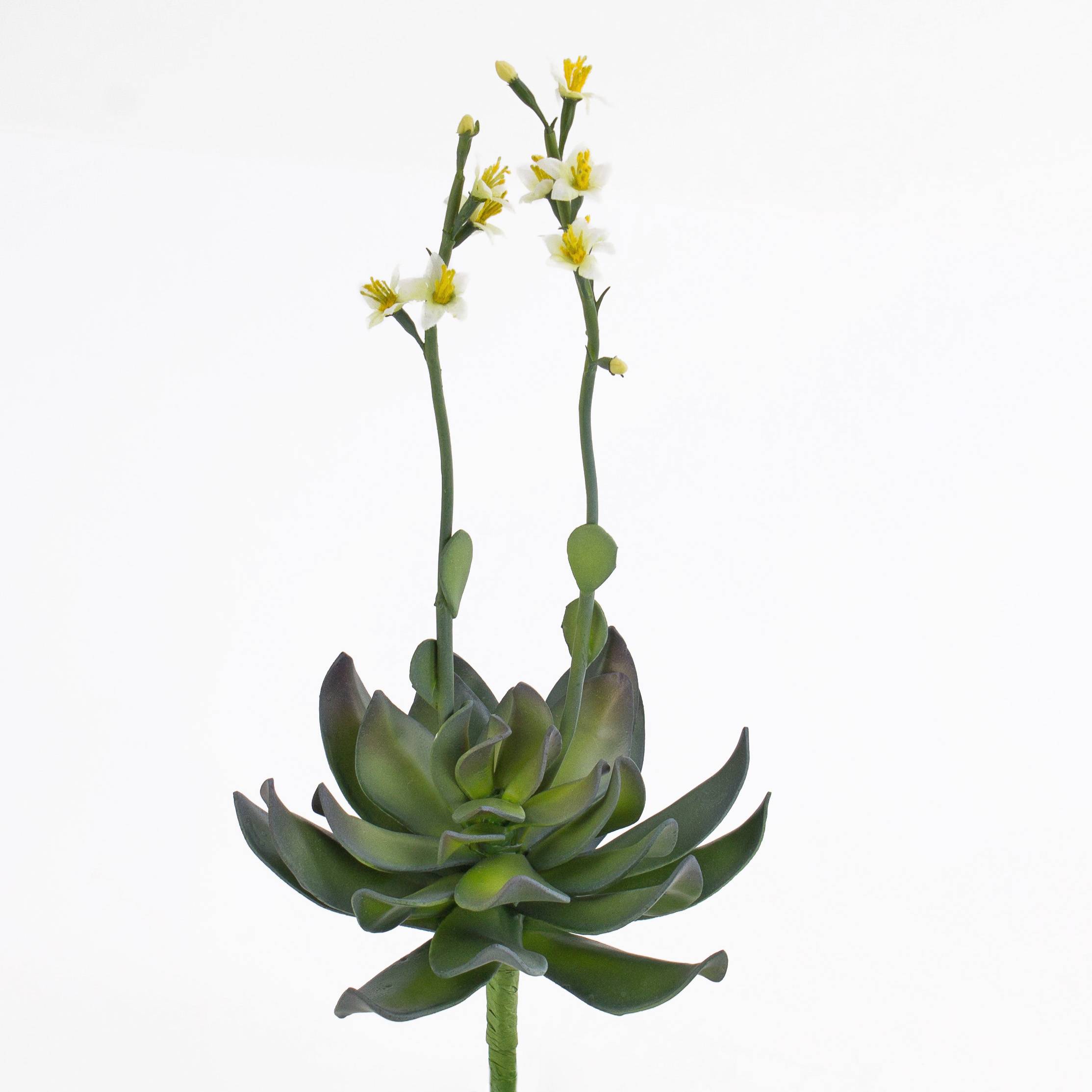 Plastic plant Aeonium CHARLIZE, flowering, spike, yellow, 12"/30cm