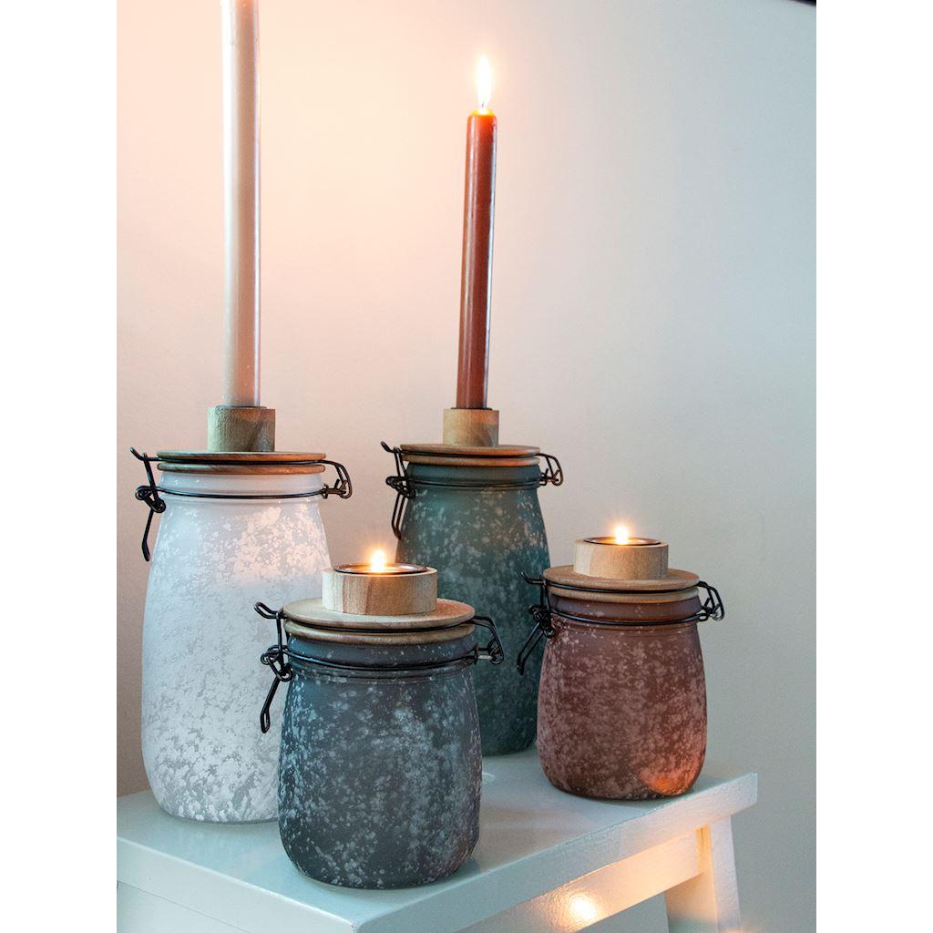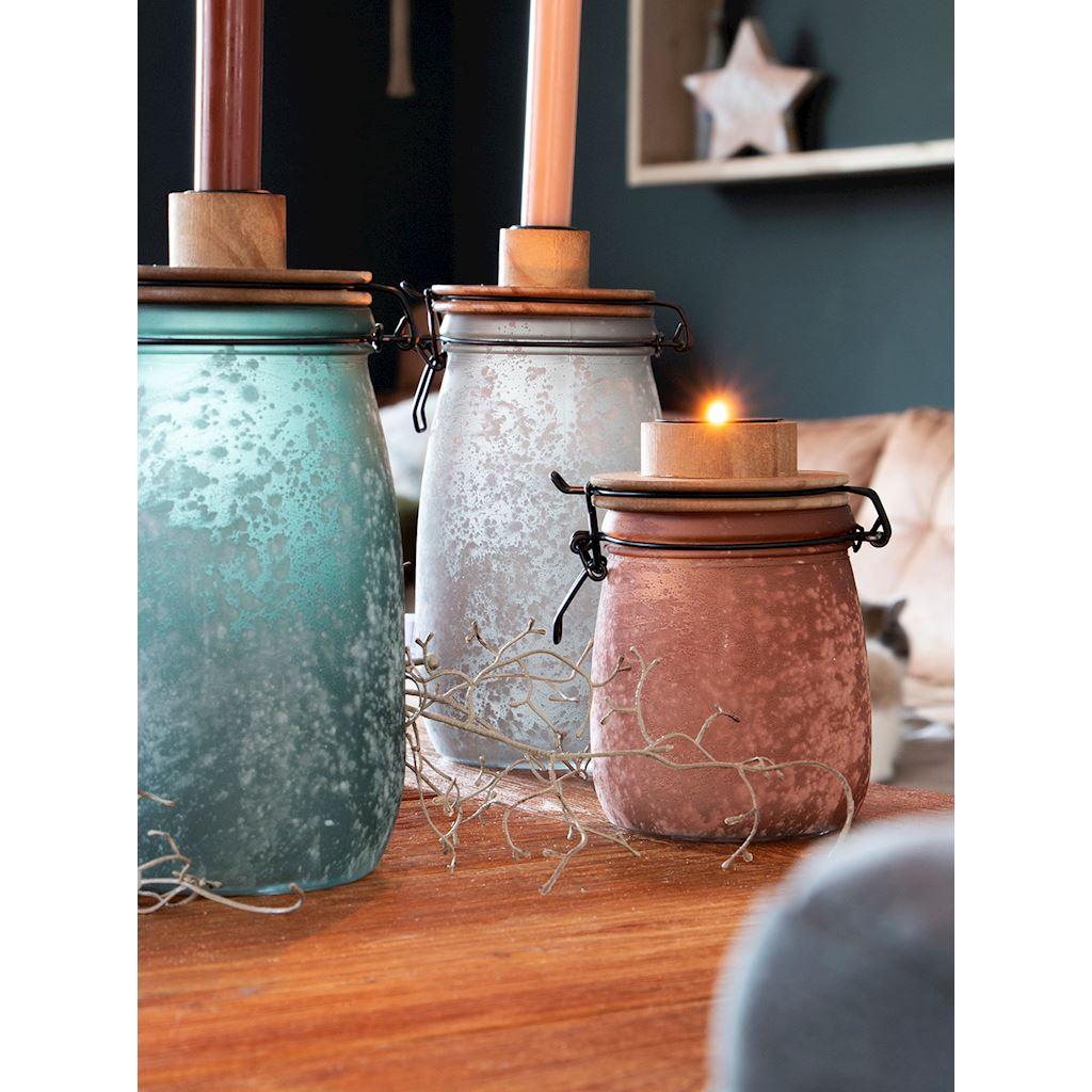 Preserving jar ANNEDORE with dinner candle holder, frosted look, petrol green, 24,5cm, Ø11,5cm