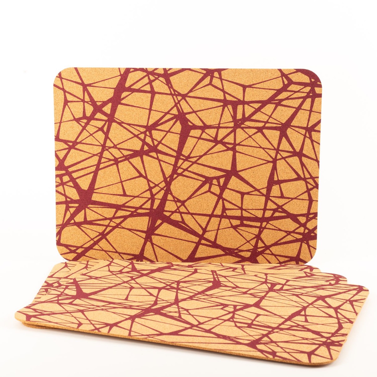 Rectangular cork placemat ARKTOS, abstract pattern, 4 pieces, natural-red, 16"x12"x0.1"/40x30x0,3cm