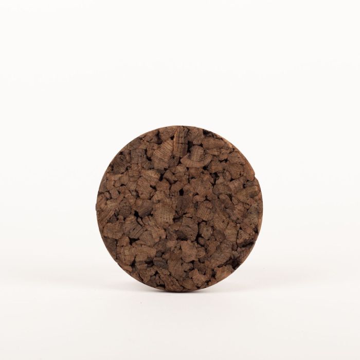 - In dark colour made of agglomerated cork, a binder is added to the sorted cork granulate to form the agglomerated cork, the binder - a food-grade adhesive - acts as a natural binder and ensures that the cork particles adhere to each other while retaining their unique properties
