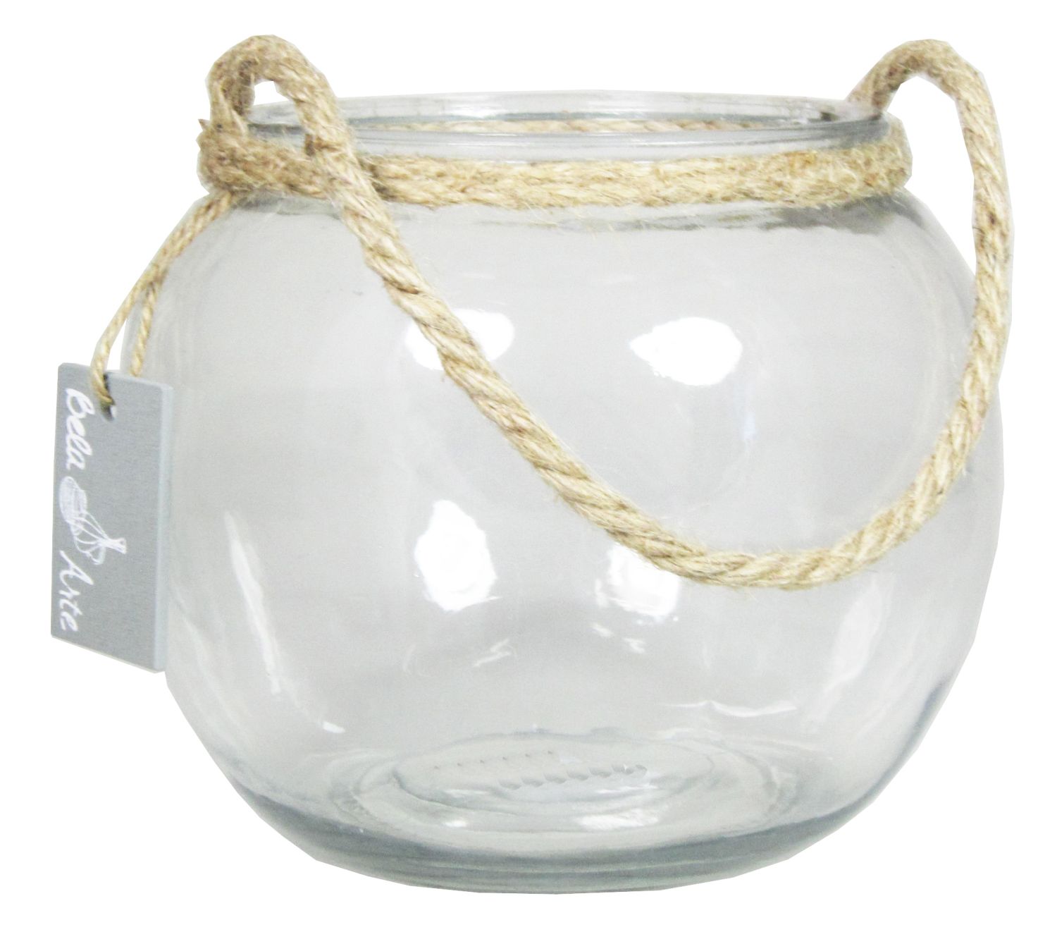 Round candle vase DAVY made of glass, with handle, transparent, 6"/15 cm, Ø 7"/18 cm