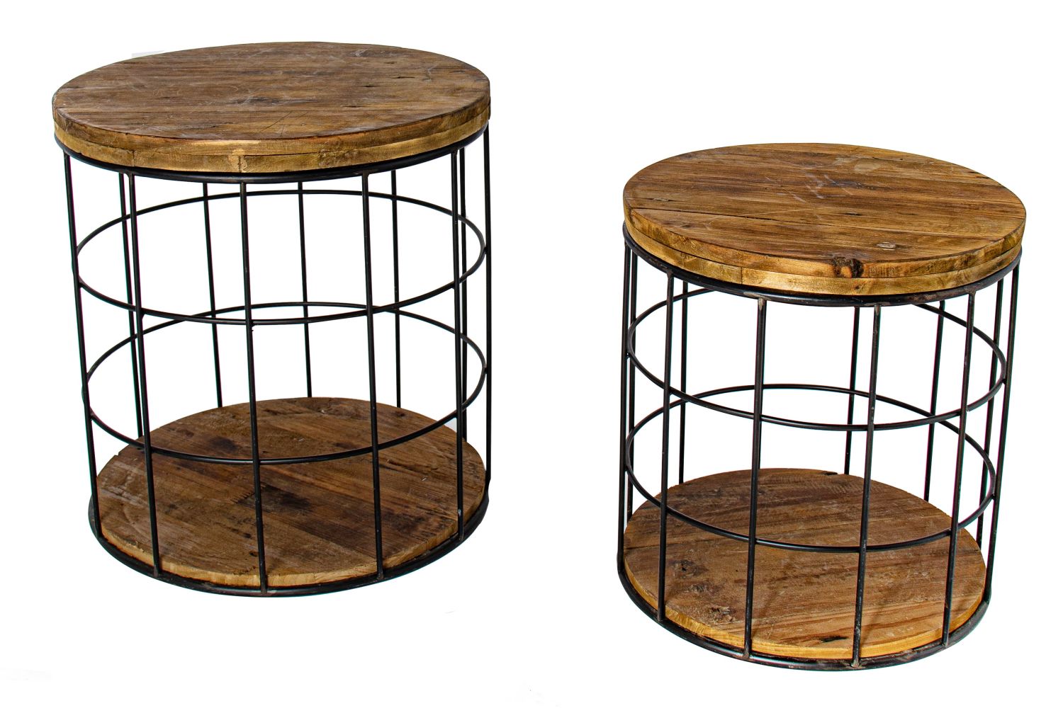 Round industrial side table CALIX 2 pieces, brown-black, 16"/40,5cm, 18,5"/46,5cm
