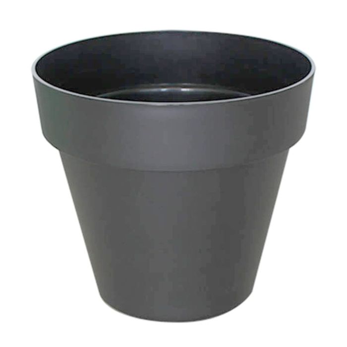 Round plant pot VINAYA made of plastic, with holes, anthracite, 12"/31cm, Ø14"/35cm