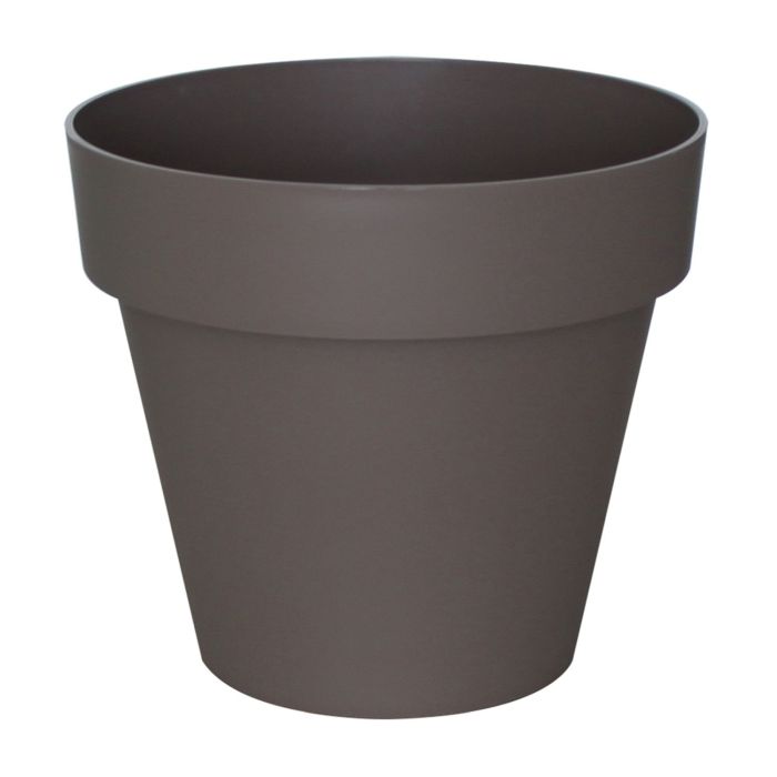 Round plant pot VINAYA made of plastic, with holes, taupe, 12"/31cm, Ø14"/35cm