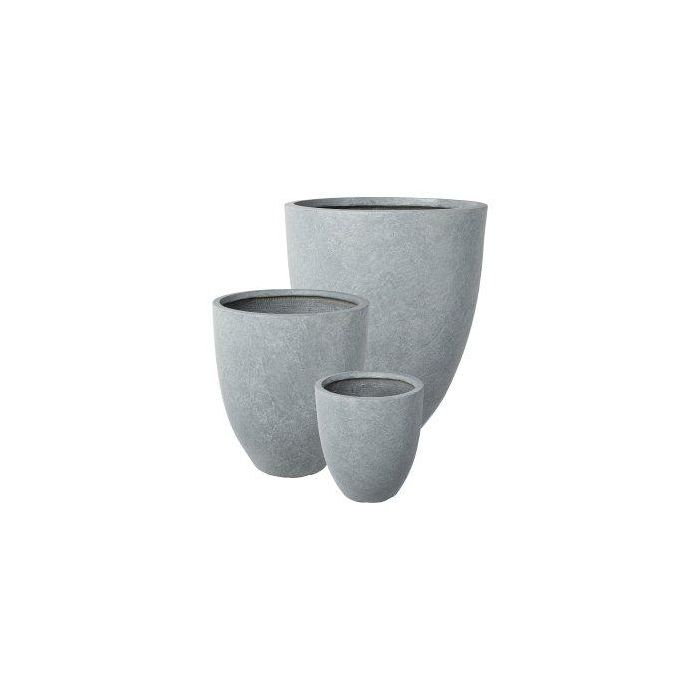 Round planter KIRIMA, 3 pieces, fibreglass, grey, 13"x12"/34x30cm, 17"x14"/42x36cm, 20"x17"/50x44cm