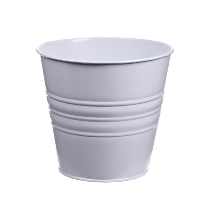 Round zinc pot MICOLATO with grooves, white, 5.1"/13cm, Ø6"/15,5cm