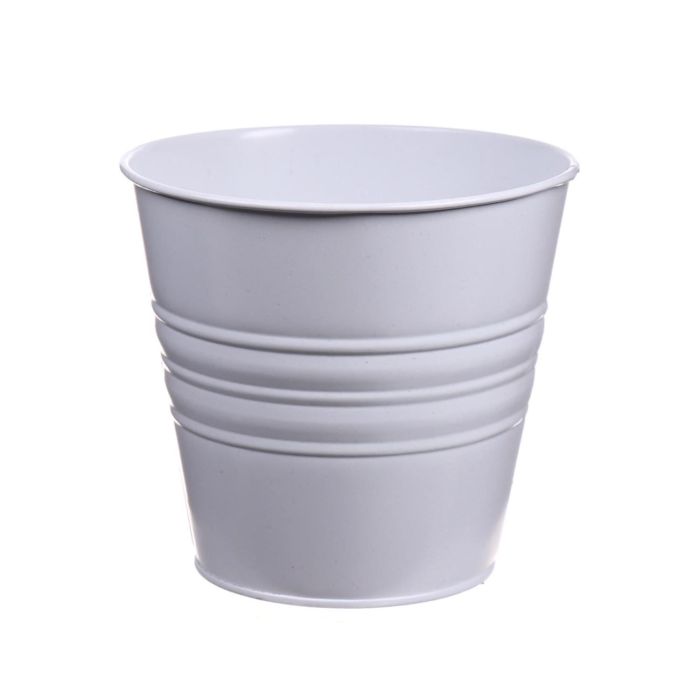 Round zinc pot MICOLATO with grooves, white, 6"/16cm, Ø7"/18,5cm