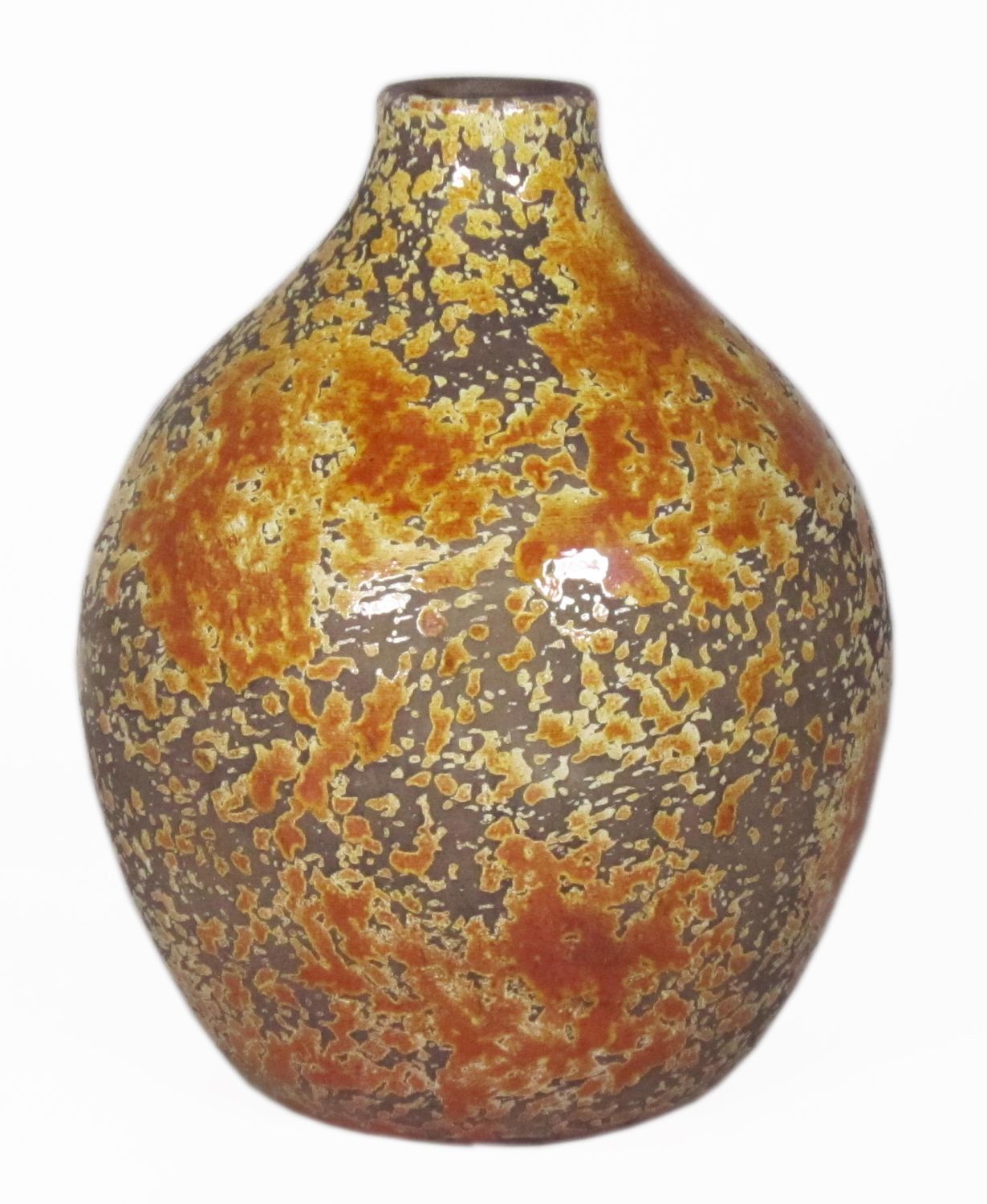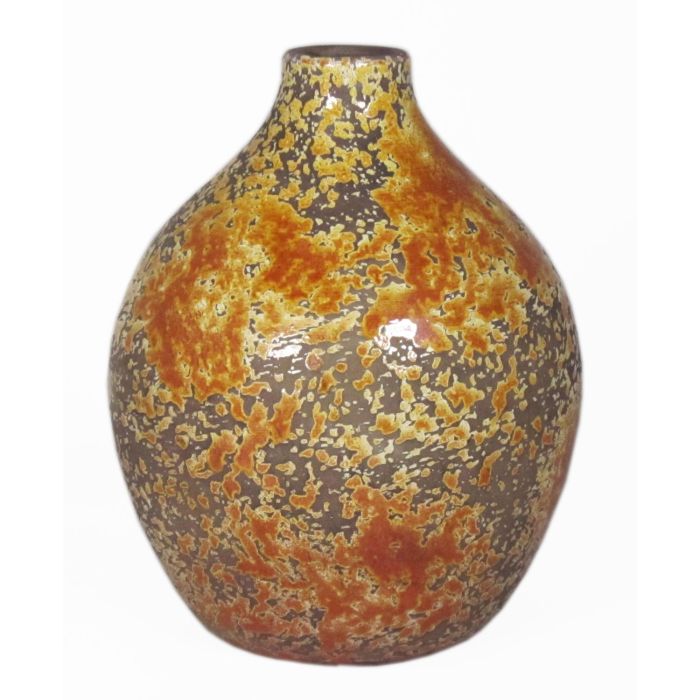 Rustic ceramic balloon vase TSCHIL, colour gradient, ochre yellow-brown, 9,5"/24cm, Ø7"/18cm