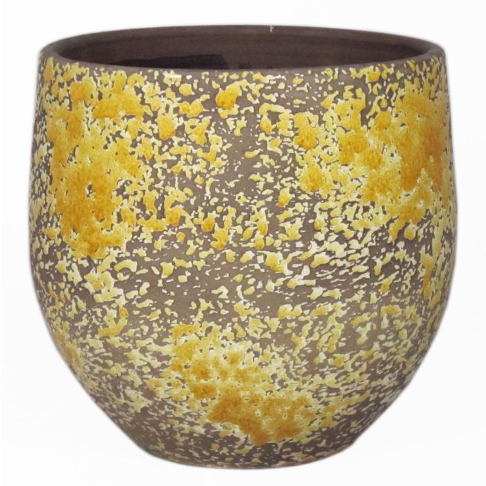 Rustic ceramic pot TSCHIL, colour gradient, ochre yellow-brown, 6,5"/16cm, Ø6,5"/17cm