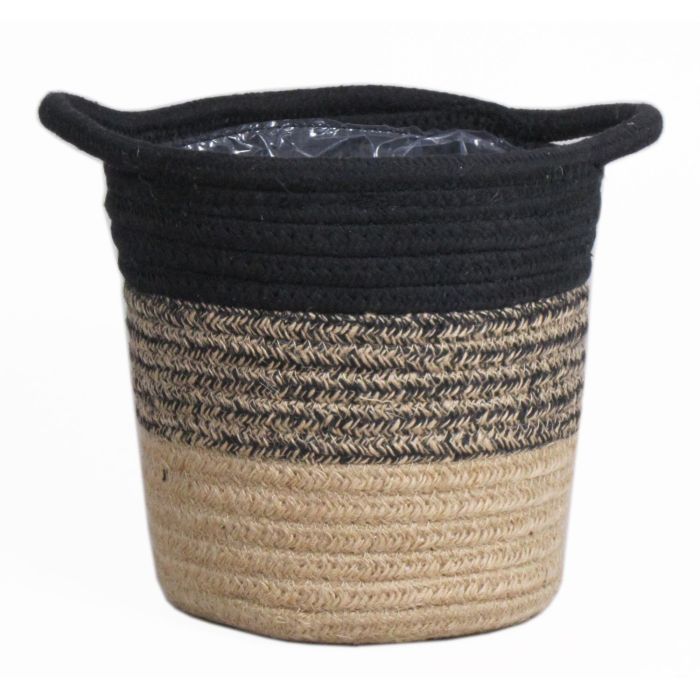 Scandinavian plant basket SAMSON, black-beige, 7,5"/19cm, Ø7"/18cm