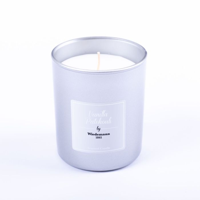 Scented candle MIREYA in glass, Vanilla Patchouli, silver, 3.7"/9,3cm, Ø3.1"/7,9cm, 35h