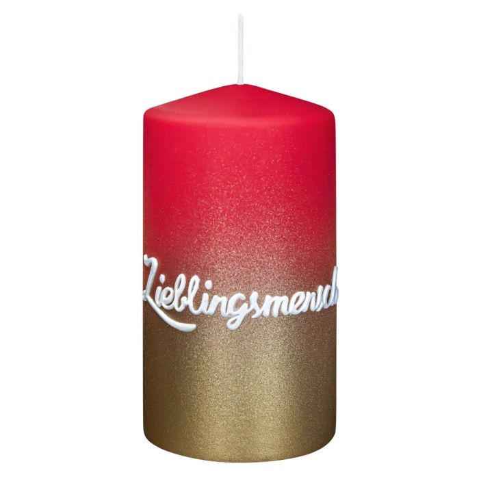 Sentiment candle JARDENA, favourite person in German, antique red-gold, 5.1"/13cm, Ø2.8"/7cm, 52h