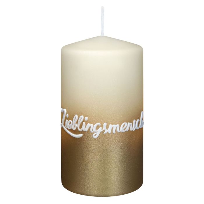 Sentiment candle JARDENA, favourite person in German, bisquit-gold, 5.1"/13cm, Ø2.8"/7cm, 52h