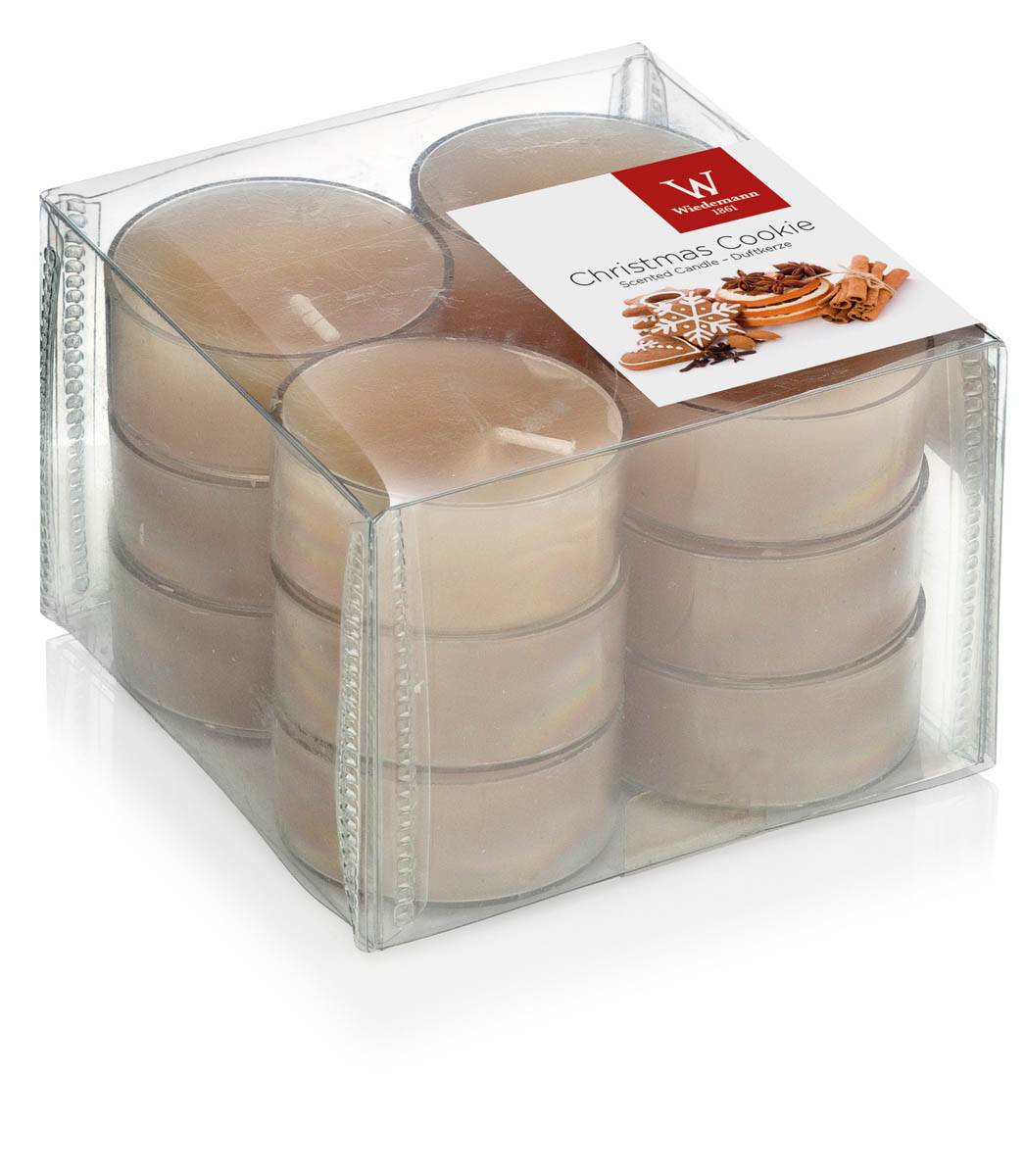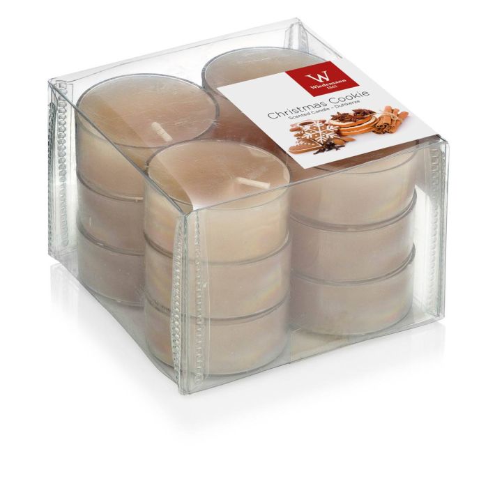Set of 12 scented tea lights / Scented candle ASTRID, light brown, 0.6"/1,6cm, Ø 1.5"/3,7cm, 4h