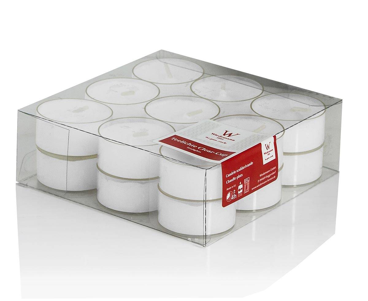Set of 18 maxi tea lights / Tea light candle KENNY, white, 0.7"/1,8cm, Ø 1.5"/3,8cm, 4h